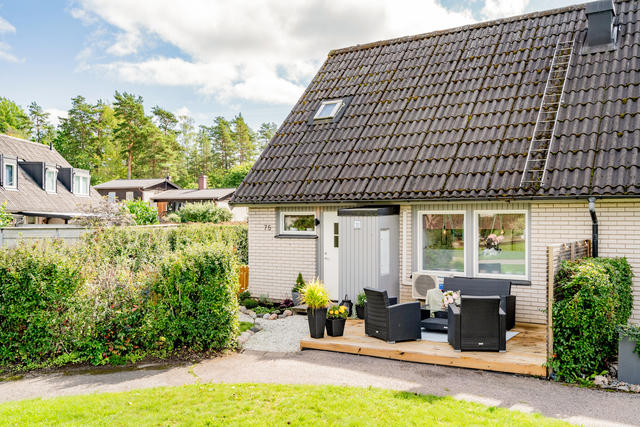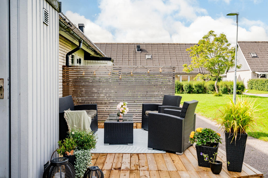 Helheten är ett hem som känns modernt, välvårdat och lätt att trivas i – med ljus, färger som tillsammans skapar en varm och inbjudande atmosfär. Här finns alla förutsättningar att börja trivas och få den rätta hemkänslan. På baksidan är en härlig uteplats där man kan njuta och omgås. Ett fint trädäck ramar in uteplatsen. Här finns även odlingslådor, fruktträd och en lagom stor gräsmatta. En skyddande häck ger ett välkomnande insynsskydd. På framsidan finns också en trevlig uteplats med trädäck.