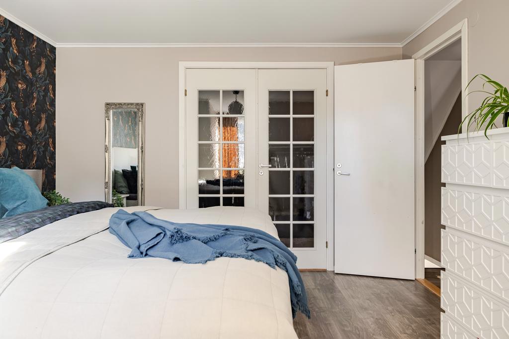 De båda sovrummen bjuder på en rogivande atmosfär med mjuka färger. Här finns gott om plats för både säng och förvaring utan att rummen känns trånga. Dessutom finns det en lyxig och bekväm walk-in closet som nås via fina dubbeldörrar från det stora sovrummet.