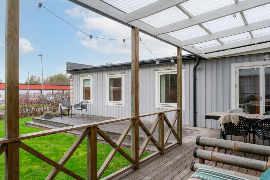 På ett insynsskyddat hörnläge i attraktiva Sundaområdet ligger detta mycket fina enplansradhus om 104 kvm fördelat på fem rum och kök. Huset har en entréhall med avhängningsmöjligheter samt en gästtoalett. Möblerbar inre hall med utgång till altan i söderläge. Stort och luftigt vardagsrum med plats för både matgrupp och soffhörna. Stora fönster som vetter mot uteplatsen. Funktionellt, fint och ljust kök i vitt som har bra arbetsytor och matplats. Huset har tre bra sovrum i olika storlekar varav ett större föräldrasovrum. Nuvarande ägare har omvandlat det utrymmet som tidigare var förråd. Idag är det ett fjärde rum som kan användas som kontor eller ett extra sovrum om man så önskar. Detta rum nås via egen dörr från utsidan samt via tvättstugan. I huset finns även ett stilrent nyrenoverat helkaklat badrum med golvvärme samt en separat rymlig tvättstuga med förvaringsmöjligheter.