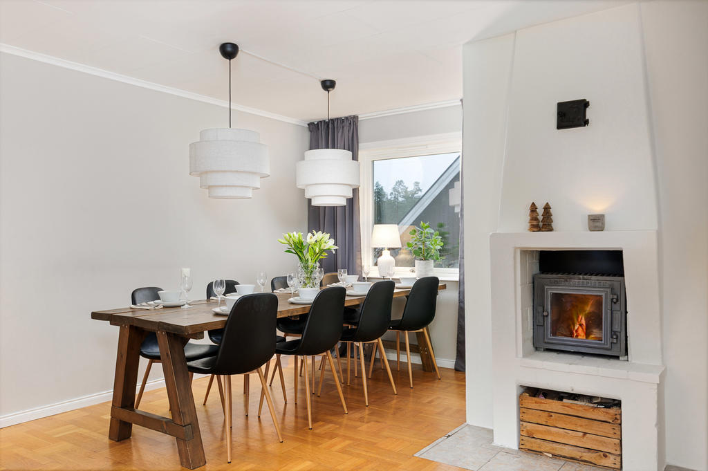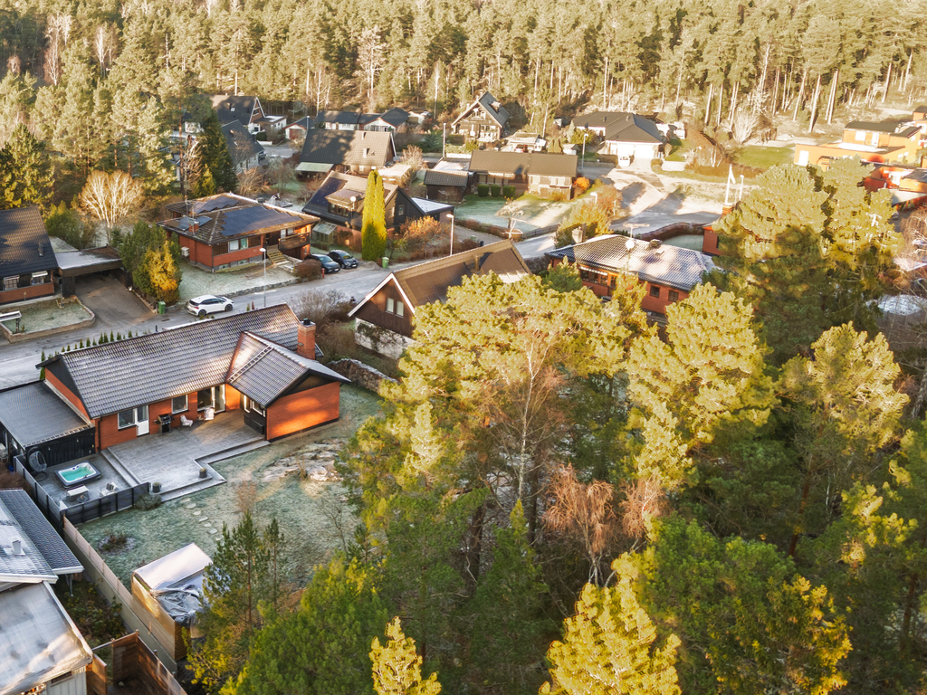 Rymlig, renoverad familjevilla på lugn återvändsgata – skogen som granne och värmande spabad!
