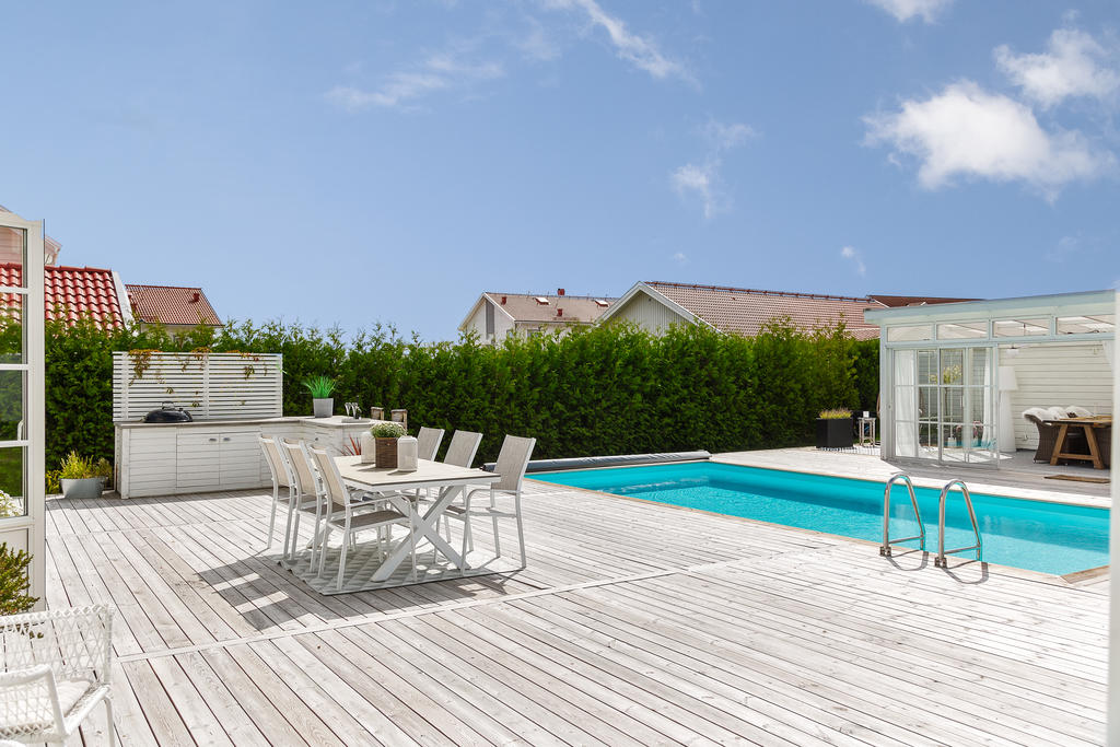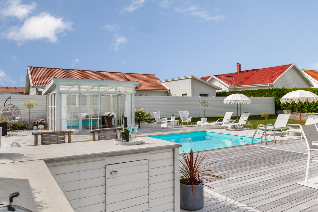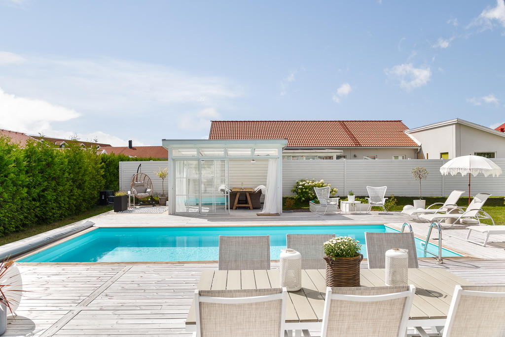 Optimal familjevilla med perfekt solläge på den insynsskyddade baksidan med poolområde och uterum!