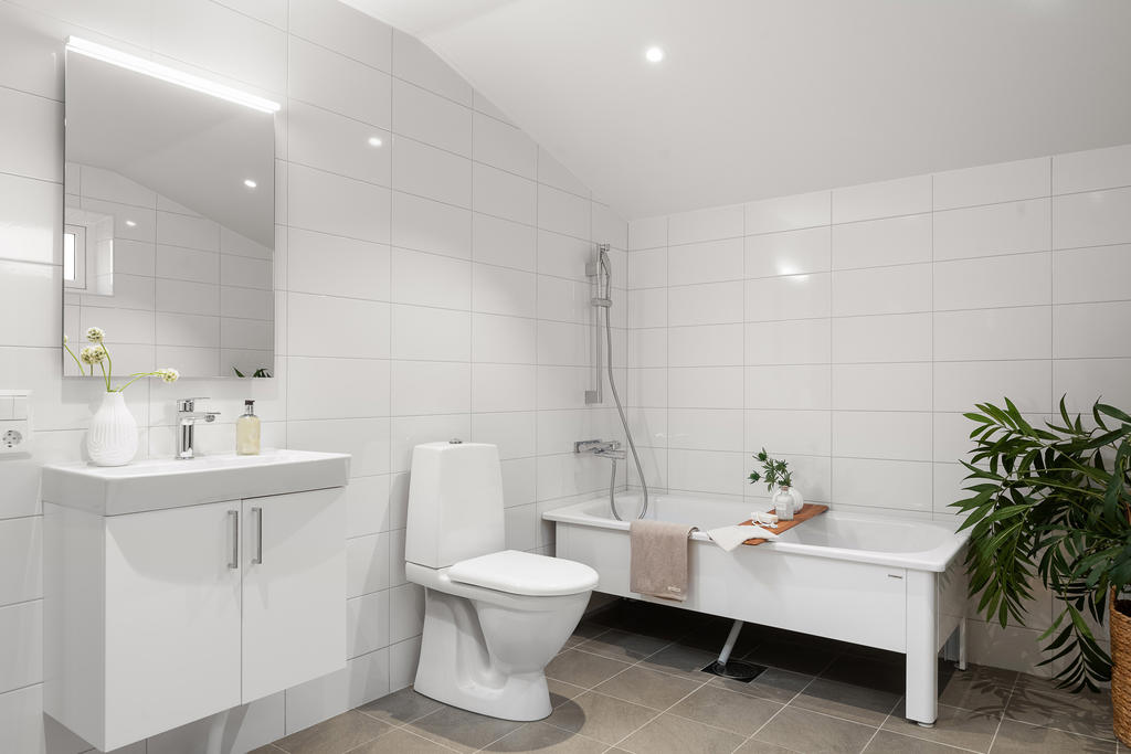Övervåningen öppnar upp med ett allrum, perfekt som tv-hörna eller barnens lekhörna, medan utrymmet vid trappan passar utmärkt som hemmakontor eller studiehörna. De tre ljusa rummen på övervåningen kan enkelt anpassas efter era behov, kanske som sovrum, kontor eller hobbyrum. Det rymliga badrummet är tänkt för avkoppling, med möjlighet att skapa ett eget hemmaspa och få en stunds ro i vardagen.