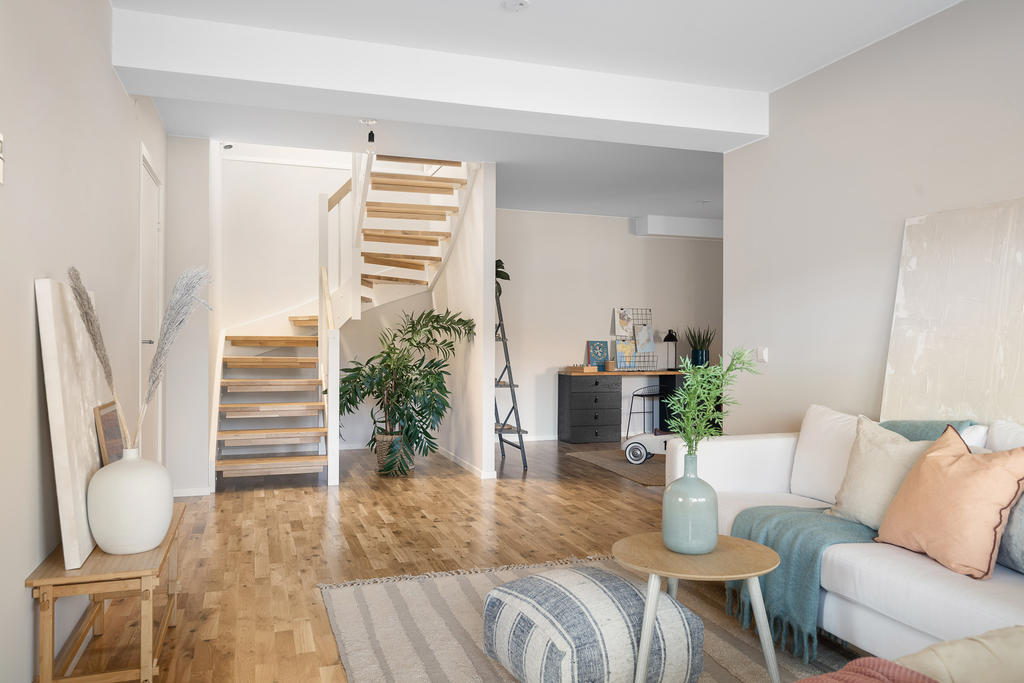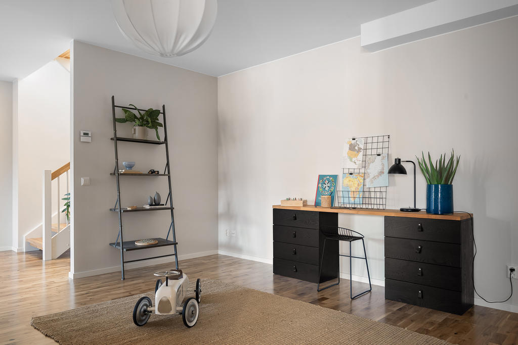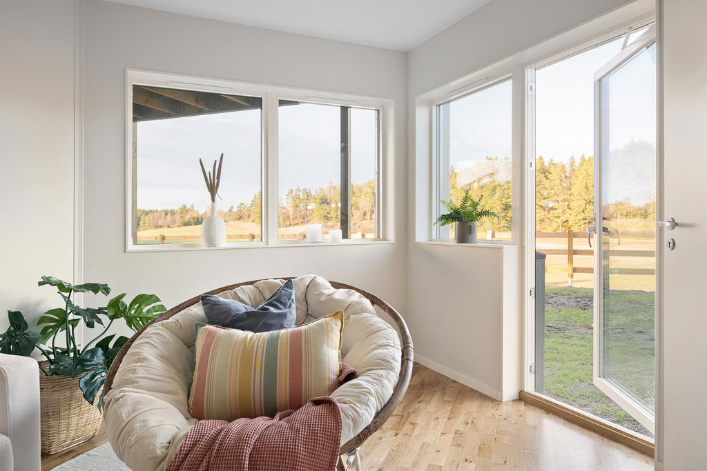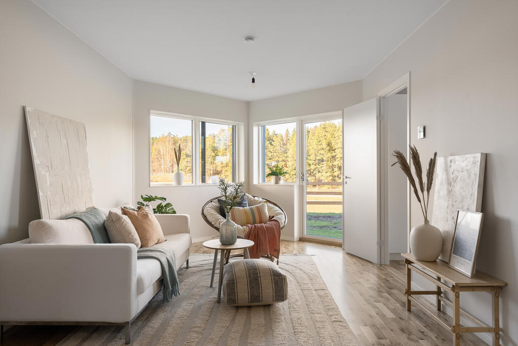 Varje hus på Åda backar är byggt med hög kvalitet i fokus. Inget har lämnats åt slumpen – från de robusta träramarna till den stilrena fasaden av träpanel och treglasfönster för bästa möjliga isolering. Interiören är noga utvald för att skapa en miljö som är både inbjudande och funktionell. Huset rymmer allt du behöver för att både bo och arbeta i en tid där flexibilitet är nyckeln.