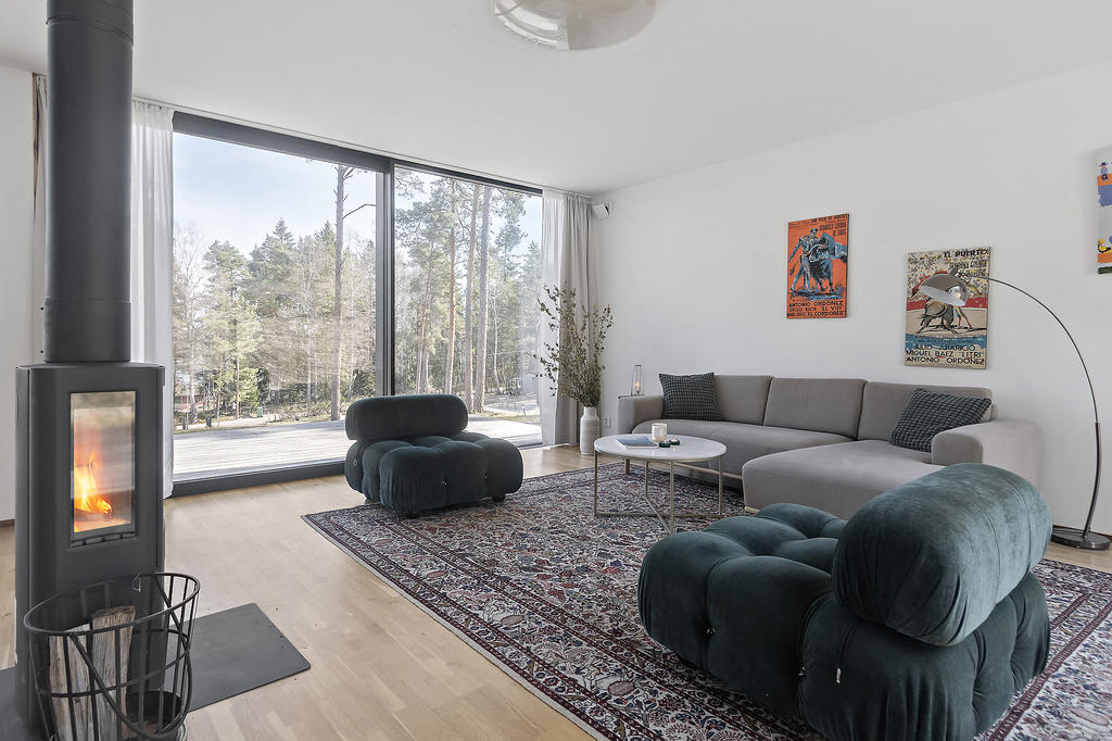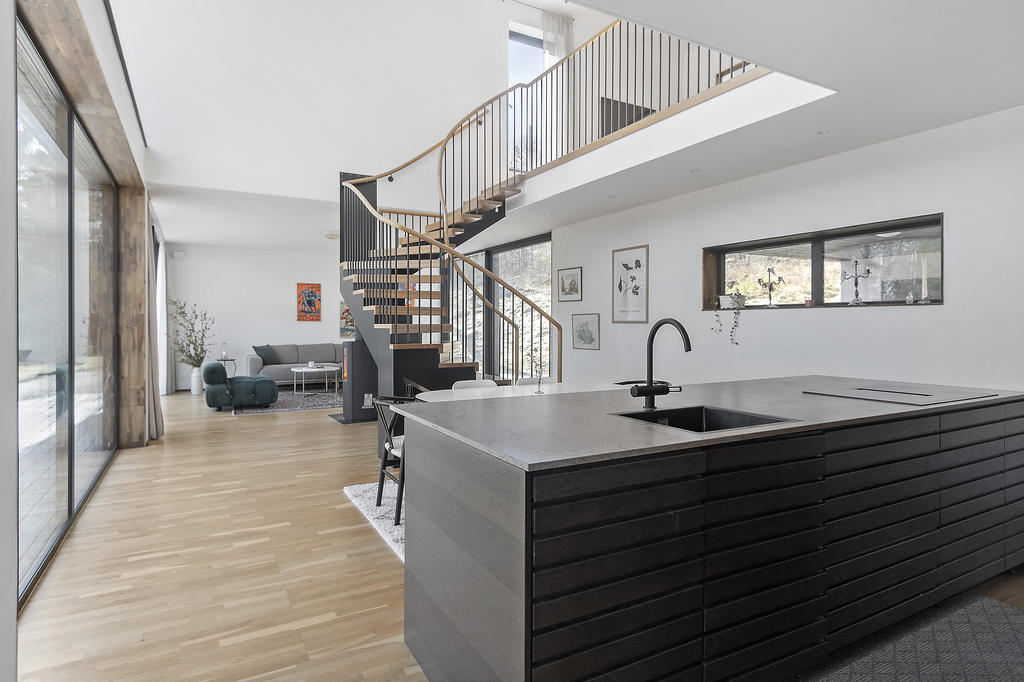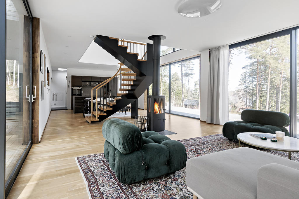 Här erbjuds ett unikt livsstilsboende där arkitektur, natur och modern komfort samspelar – med mycket låga driftkostnader och en genomtänkt design som gör huset lika imponerande som trivsamt att leva i.