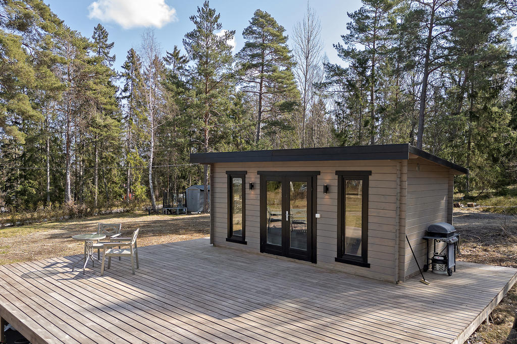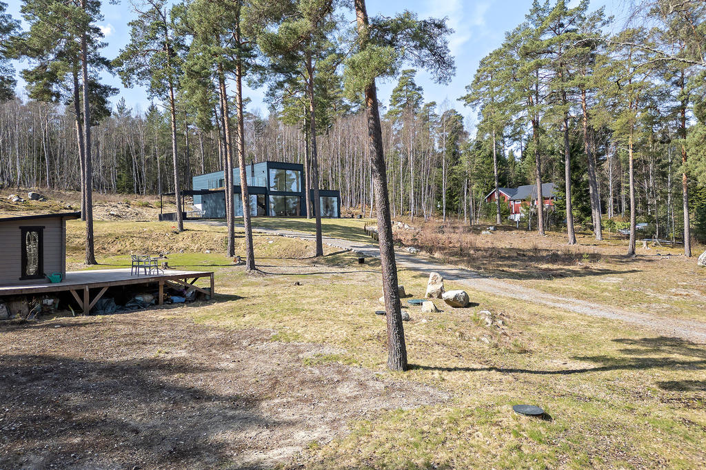 Den generösa naturtomten om 5 970 kvm består av både öppna ytor och skogsparti, vilket ger en privat och naturnära miljö. På tomten finns även en charmig gäststuga med indragen el samt en stor altan som fångar kvällssolen. Fastigheten har del i sjötomt där möjlighet finns att anlägga egen brygga och ha båtplats. Under vinterhalvåret erbjuds en vacker sjöutsikt, medan sommarens grönska ger ett insynsskyddat och avskilt läge.