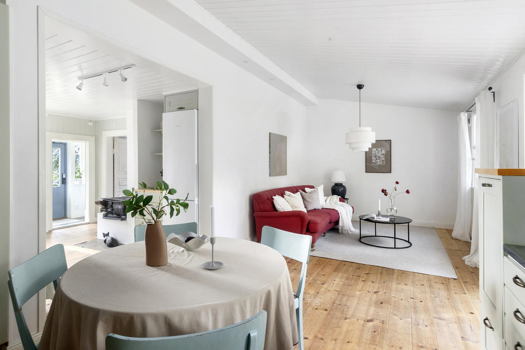 Välkomnande entréveranda, väl inne möts man av en ombonad interiör. Många äldre detaljer är bevarade samtidigt som huset har genomgått omfattande moderniseringar. Stor vikt har lagts vid att behålla känslan genom bl.a. pärlspont och trägolv.