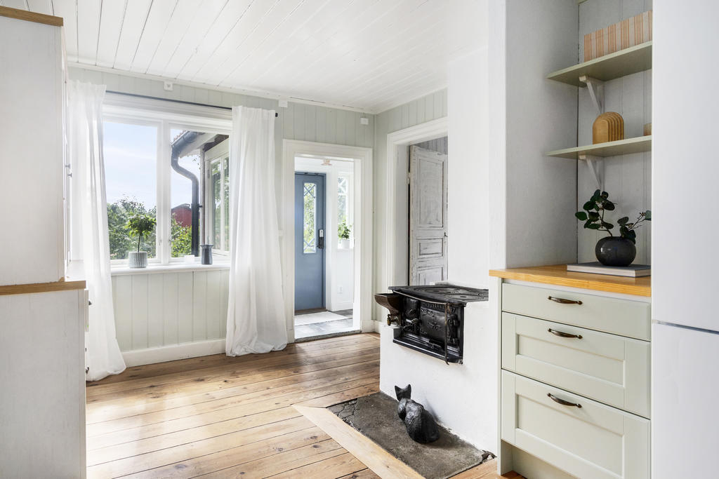 Välkomnande entréveranda, väl inne möts man av en ombonad interiör. Många äldre detaljer är bevarade samtidigt som huset har genomgått omfattande moderniseringar. Stor vikt har lagts vid att behålla känslan genom bl.a. pärlspont och trägolv.