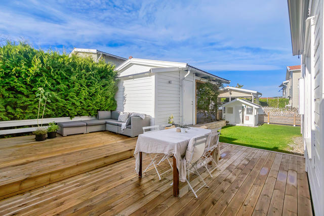 2-planshus med fyra sovrum och insynsskyddat läge i barnvänliga Sandudden!