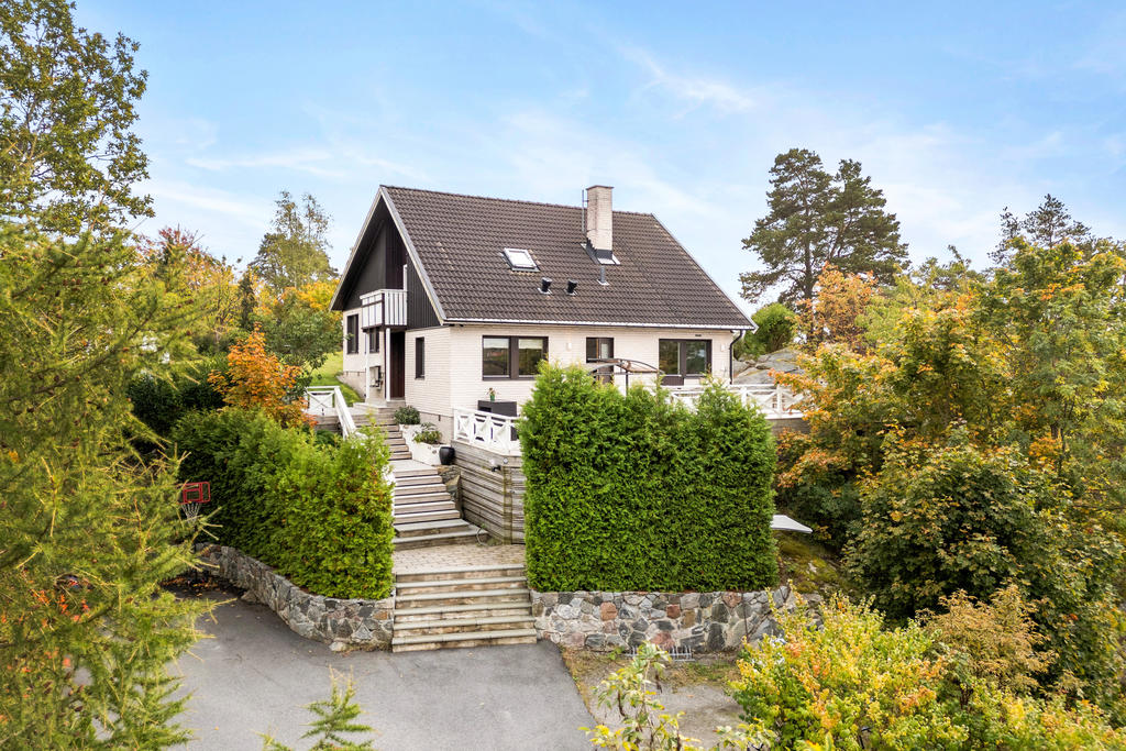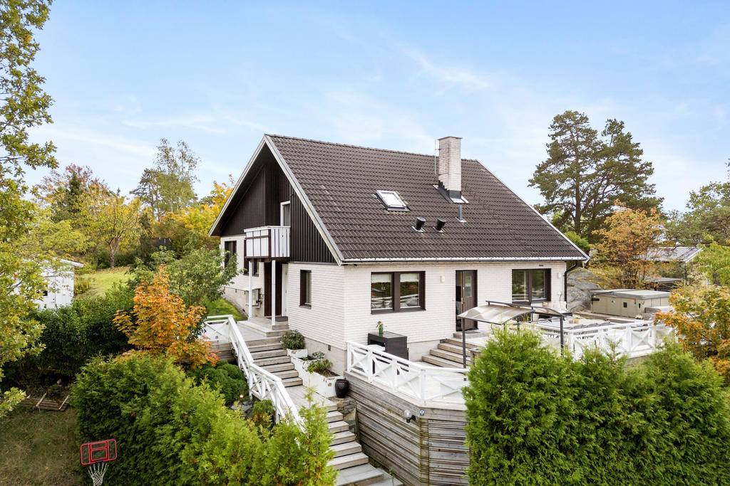 Välkommen till ett unikt och välplanerat hem i tre etage – beläget högt och insynsskyddat med milsvid utsikt över Stenhamras takåsar.