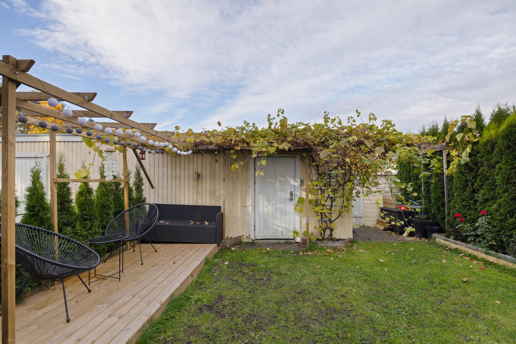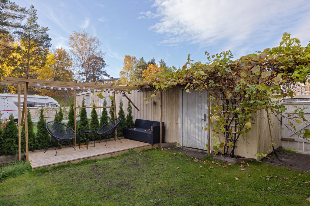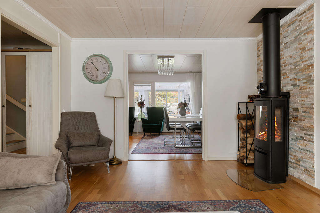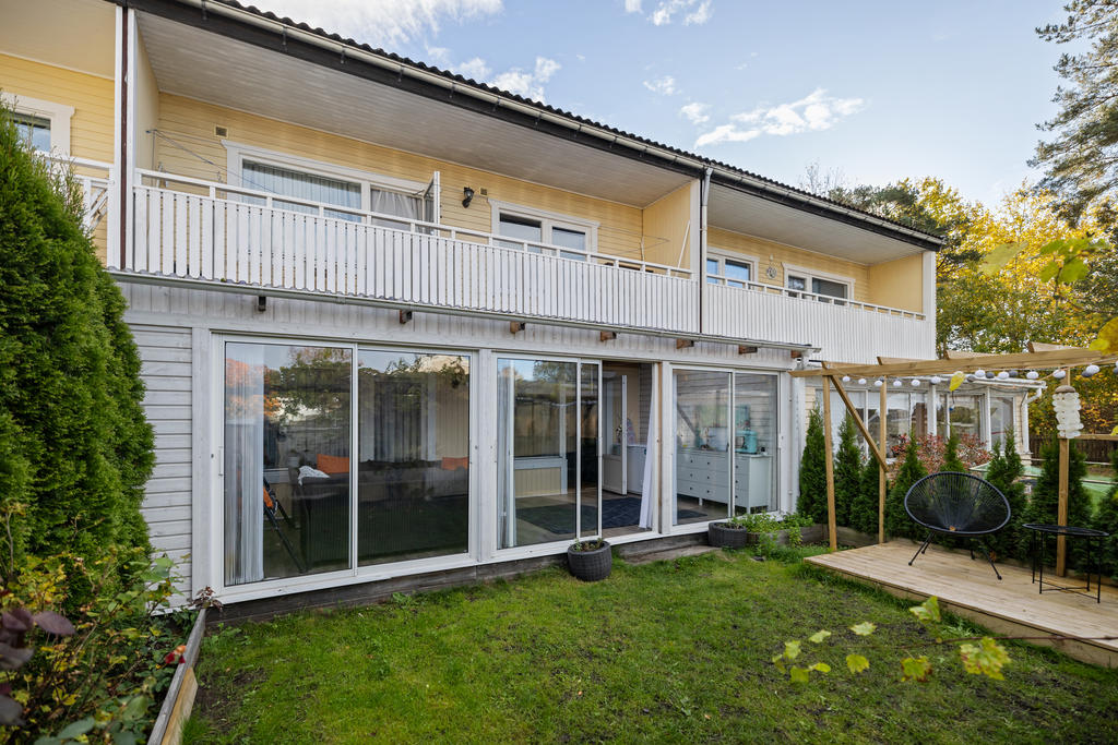 Renoverat radhus med kamin, altan och perfekt läge för barnfamiljen