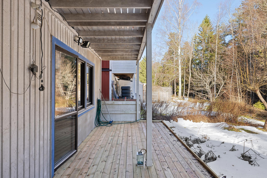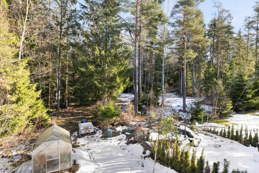 Gavelradhus ut mot skogen i ett lugnt läge med