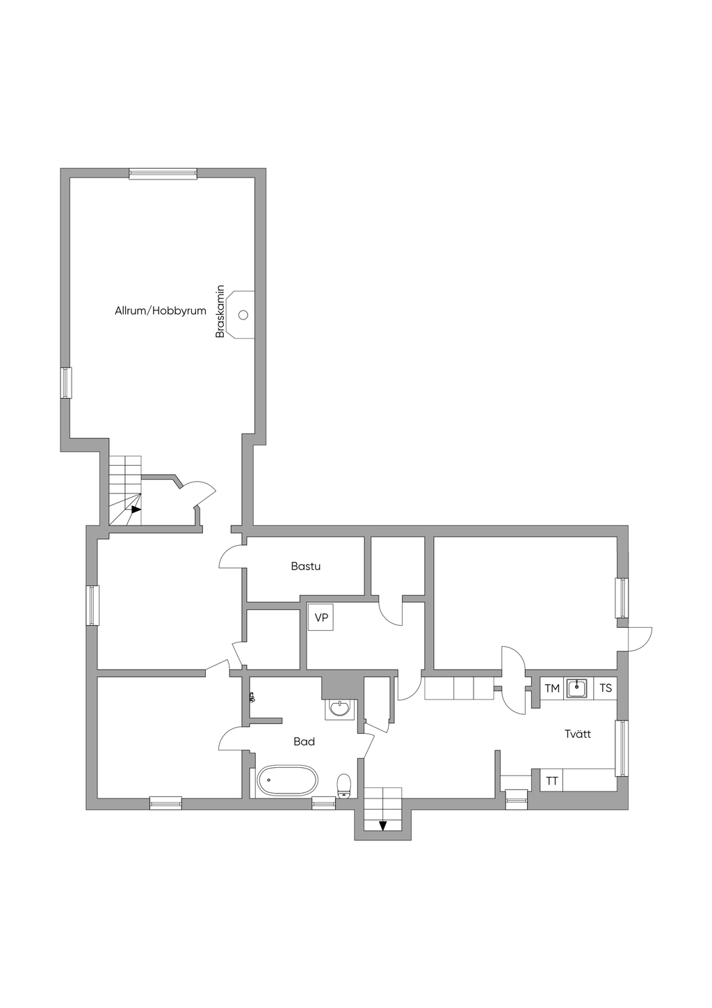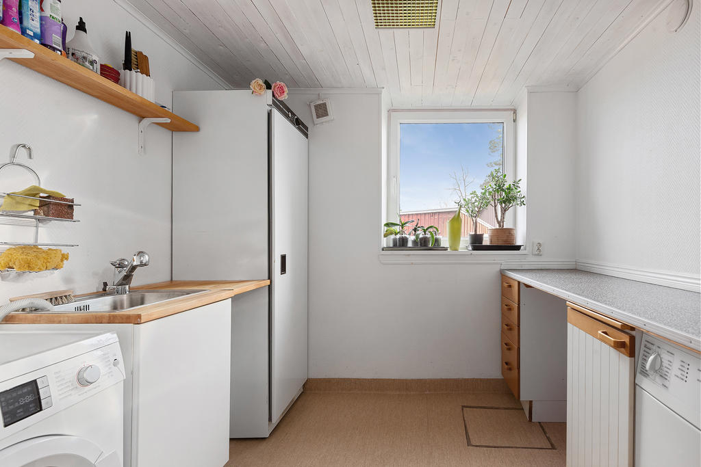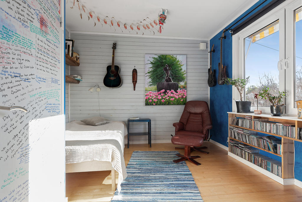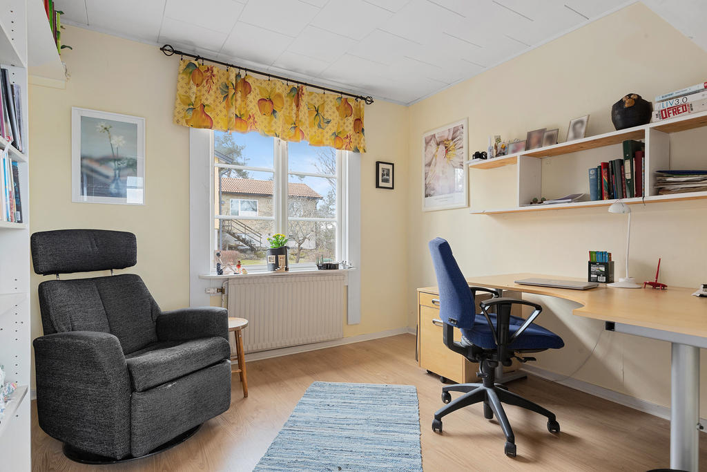 Livet här är lika praktiskt som det är vackert. På det övre planet ryms fyra bra sovrum som samlar familjen, medan det nedre planet i souterräng erbjuder imponerande ytor för hobbyverksamhet eller tonårshäng. Här finns ett stort allrum med ytterligare en braskamin, en bastu och en rymlig tvättstuga.