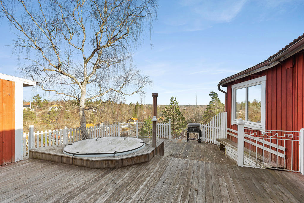 Utemiljön på Åbovägen 6 är något alldeles extra och fungerar som ett extra vardagsrum under sommarhalvåret. Den stora trallen sträcker sig högt över omgivningen och badar i sol nästan hela dagen. Här finns plats för både matlagning vid grillen och sena kvällar under pergolan. Platsen är lika magisk under vinterhalvåret, det är livskvalitet på riktigt att få sjunka ner i den vedeldad badtunnas varma vatten under nyårsnatten med ett glas bubbel och en svårslagen vy över alla fyrverkerier som lyser upp himlen över horisonten.