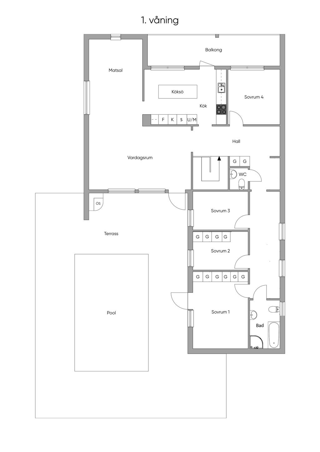 Stor 60-talare med privat tomt med pool och öppenspis vid terrassen