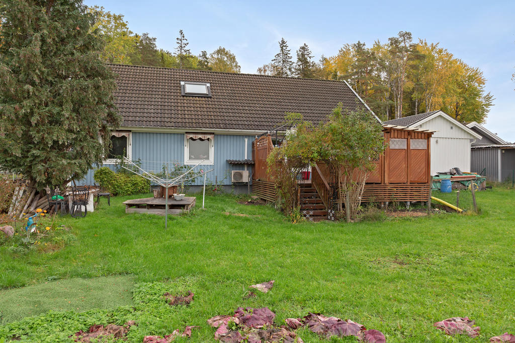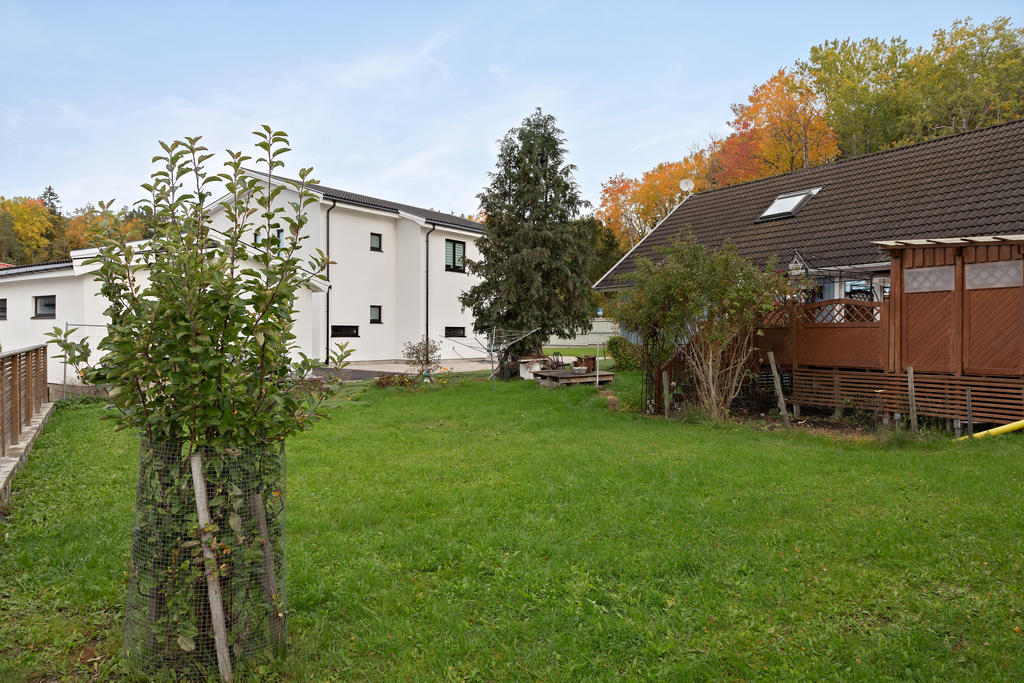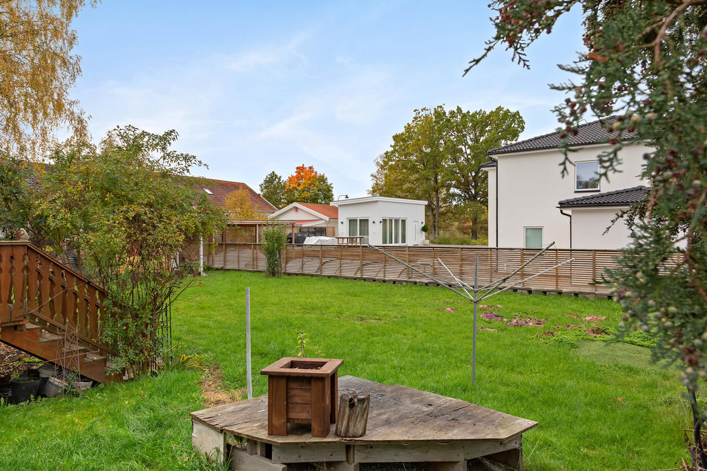 Familjevilla med garage och plan trädgårdstomt