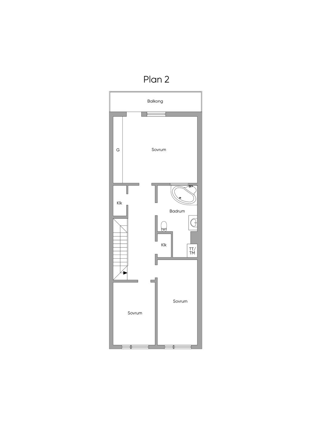 Övre plan erbjuder tre väldisponerade sovrum, varav det större har utgång till egen balkong. Här finns även en rymlig klädkammare samt ett stort helkaklat badrum med badkar, tvättmaskin och torktumlare.