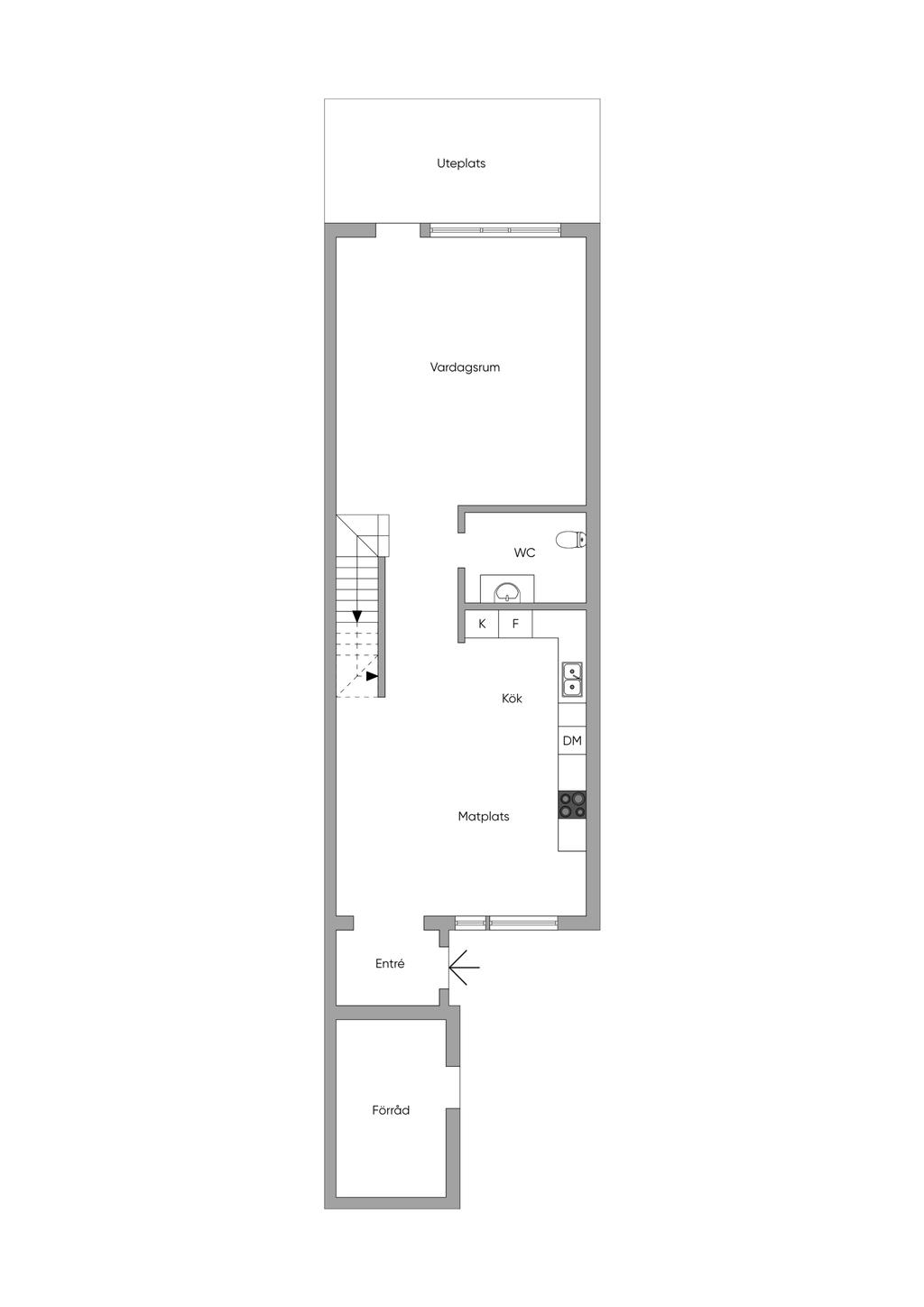 Entréplanet välkomnar med en rymlig och praktisk hall med klinkergolv och golvvärme. Köket har delvis öppnats upp mot vardagsrummet vilket skapar en modern och luftig känsla med fint ljusinsläpp från stora fönsterpartier.