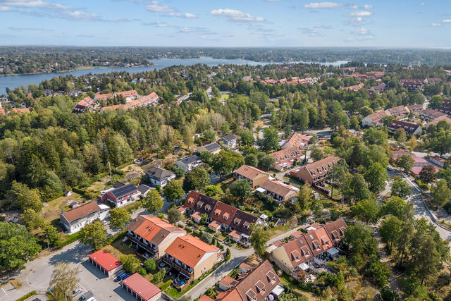 Området präglas av lugna gårdar och lekplatser i en trygg miljö. Endast cirka tre minuters promenad bort ligger Skogås Centrum med mataffär, apotek och restauranger. Pendeltåget tar dig smidigt in till Stockholm City på cirka 20 minuter.