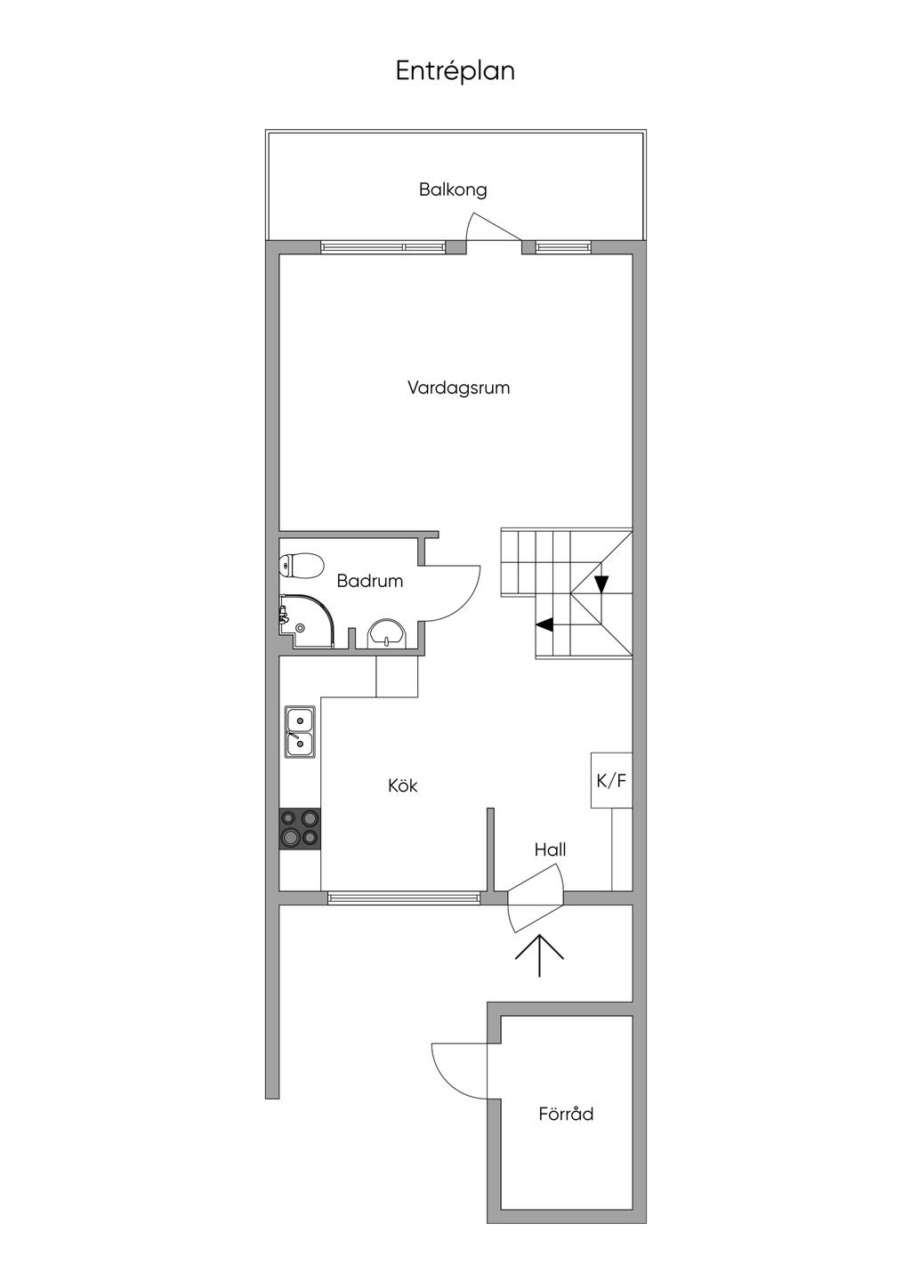 Entréplanet utgör hemmets sociala hjärta där kök och vardagsrum samspelar i en öppen och inbjudande planlösning. Köket, som renoverades 2018, är stilrent och modernt med vita luckor, generösa arbetsytor och infälld diskho. Vitt kakel ovanför bänkarna tillsammans med rostfria vitvaror – spishäll, ugn, fläkt och diskmaskin – skapar ett elegant och funktionellt arbetskök. Fullhöjd kyl och frys med ismaskin ger extra bekvämlighet. Här finns gott om förvaring och en rymlig matplats som inbjuder till både vardagsmiddagar och större sammankomster.