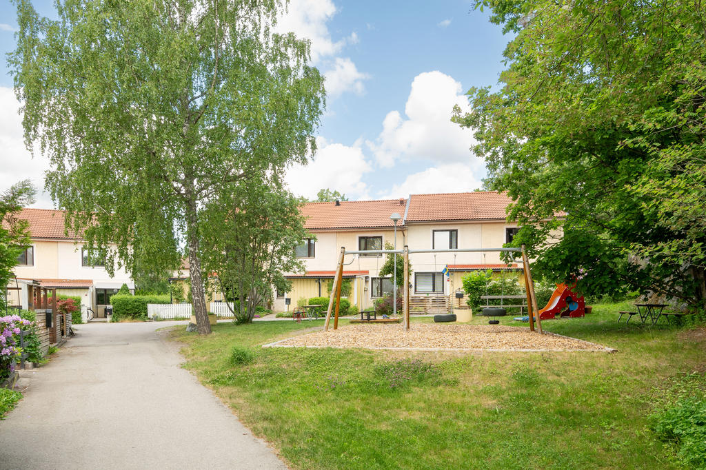 Här bor du på en lugn återvändsgata i ett omtyckt radhusområde med närhet till både natur och service. Via gång- och cykelvägar når du enkelt skolor, förskolor, Centrum och pendeltågsstationen i Skogås C. Med pendeltåget tar du dig till Stockholm City på cirka 20 minuter.