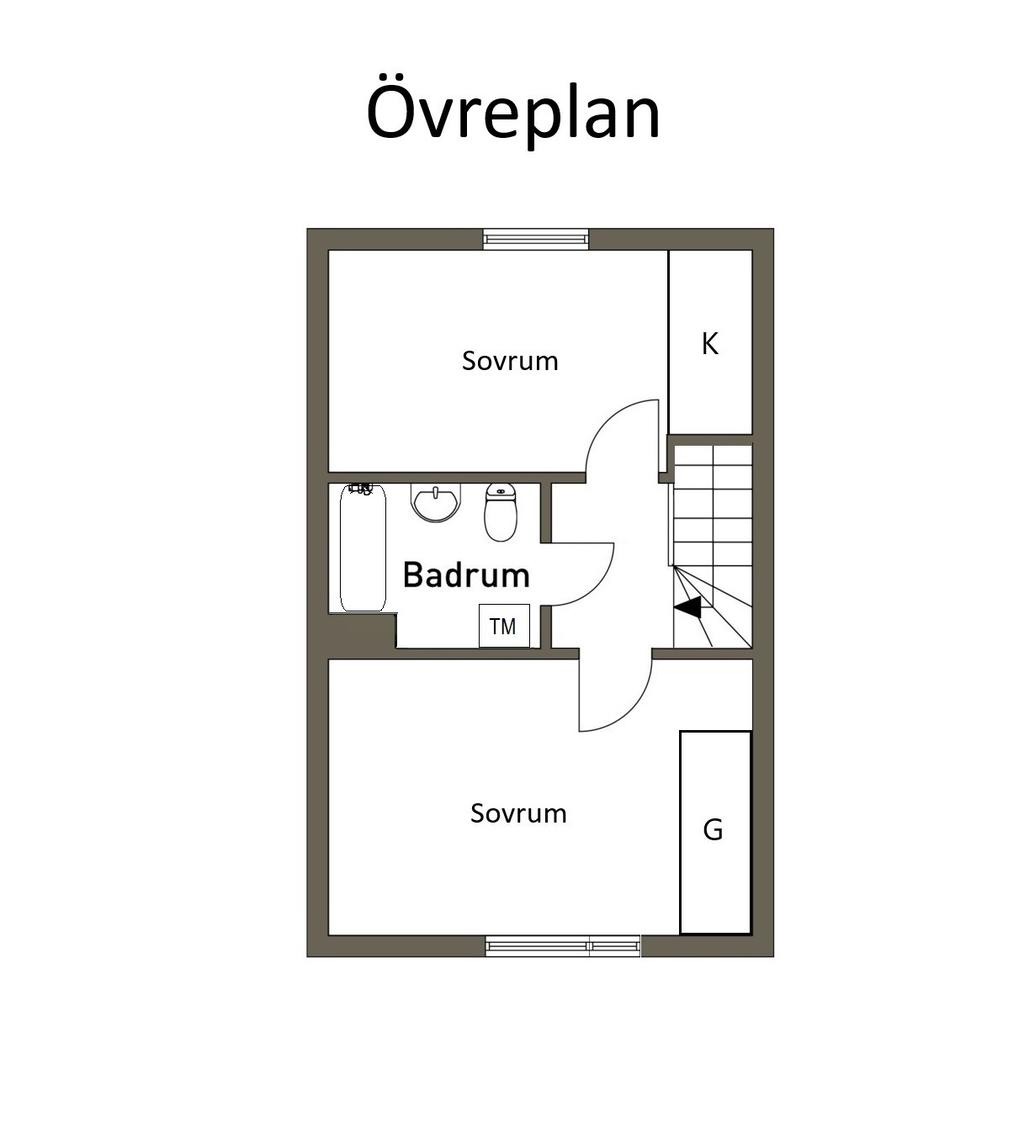 På övre plan finns två väldisponerade sovrum med goda förvaringsmöjligheter i garderober och klädkammare. Här finner ni även ett rymligt badrum utrustat med badkar. Ytterligare förvaring erbjuds i både förråd och vindsutrymme, vilket gör det enkelt att hålla hemmet organiserat.
