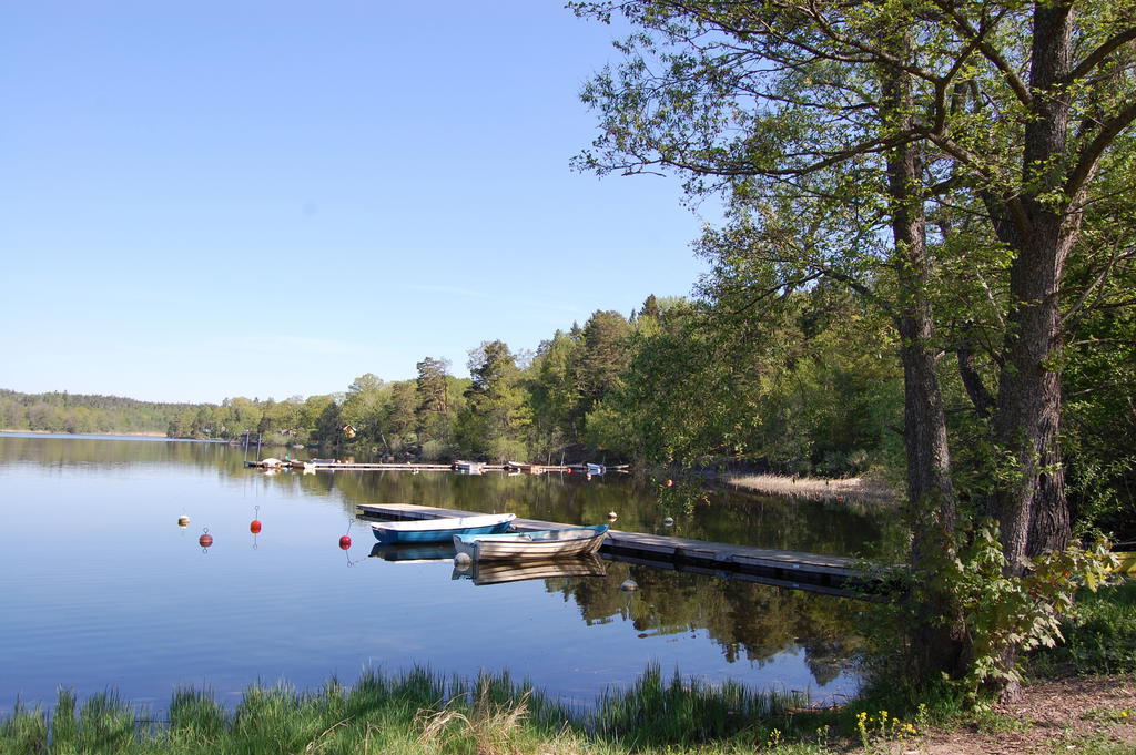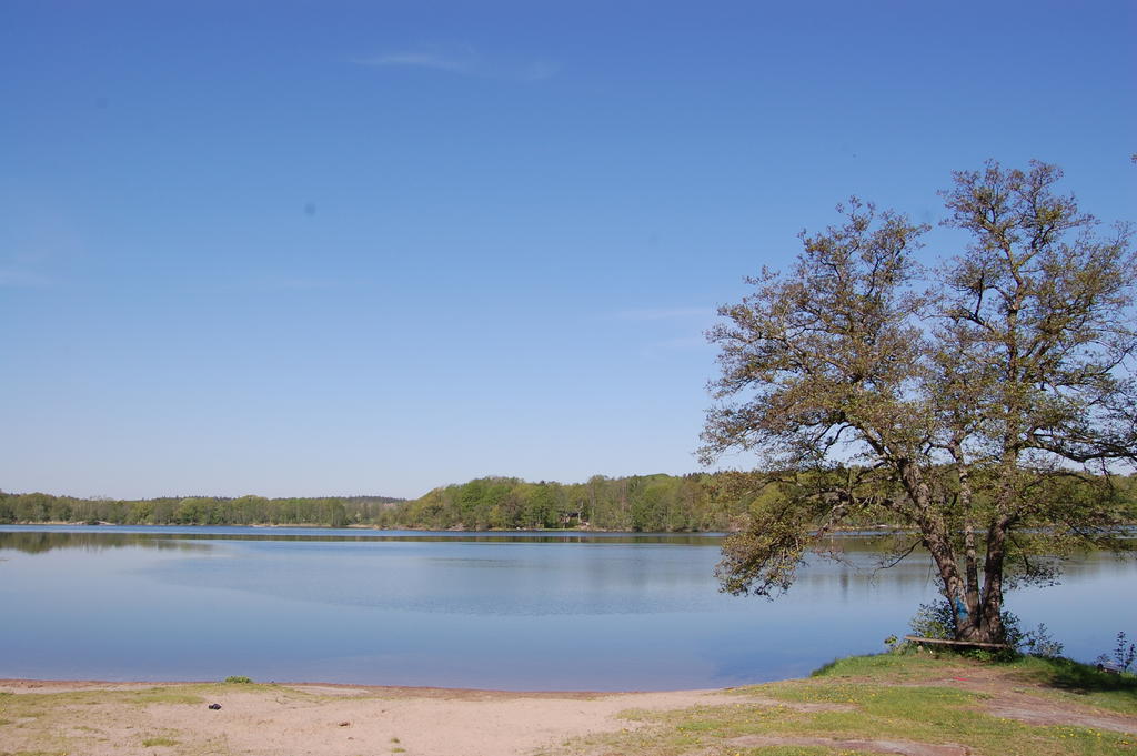 Tomt med möjlig båtplats och två timmerstugor i privatläge