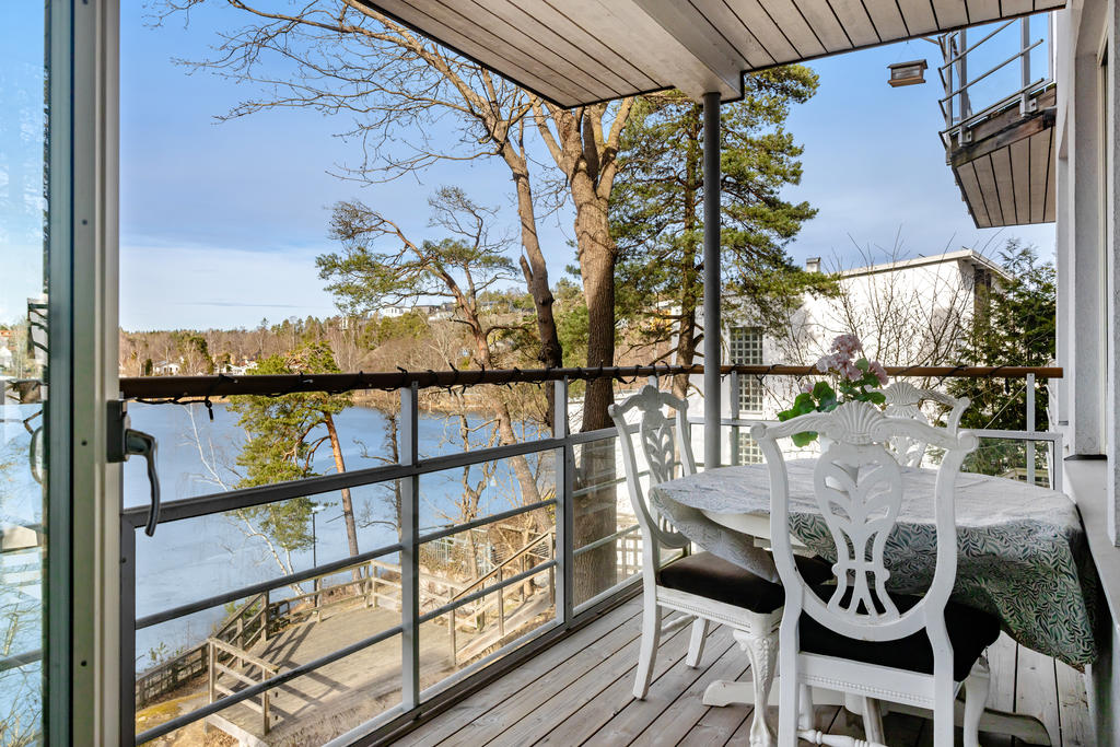 Här bor du i ett modernt och ljust hem med fina ytskikt. I köket tog man ner en vägg och ersatte den men en köksö vilket har skapat en öppen och ljus planlösning mellan kök och vardagsrum. Köket har skåp hela vägen upp till tak, samt gott om arbetsyta. För den matlagningsintresserade har man installerat en högkvalitativ spis/ugn med både gas och el. Bostaden erbjuder två badrum, rikligt med ljusinsläpp samt två stycken balkonger med en underbar sjöutsikt som sätter extra guldkant på vardagen.