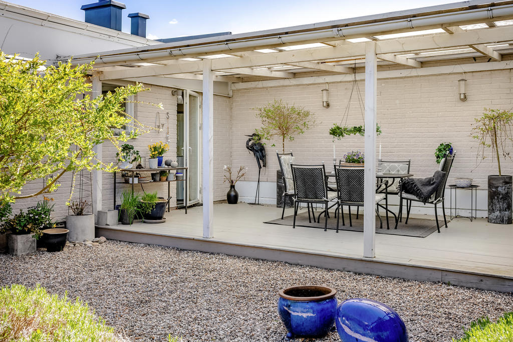 Charmigt hus med fantastisk innergård och en fantastisk utsikt – en oas för livsnjutaren! Drömmer du om en egen grönskande oas mitt i vardagen? Då har du hittat rätt! Detta trivsamma hus erbjuder en unik och insynsskyddad innergård med vackra planteringar, och en stor, taköverdragen, altan där du kan njuta av årets alla årstider. På gården finns även en mysig ateljé – perfekt för dig som vill skapa, arbeta hemifrån eller bara ha en egen lugn plats. Dessutom finns ett praktiskt förråd för extra förvaring. Här bor du i en harmonisk miljö med närhet till naturen och samtidigt bekvämt avstånd till stadens utbud. Ett hem för dig som vill ha något utöver det vanliga!