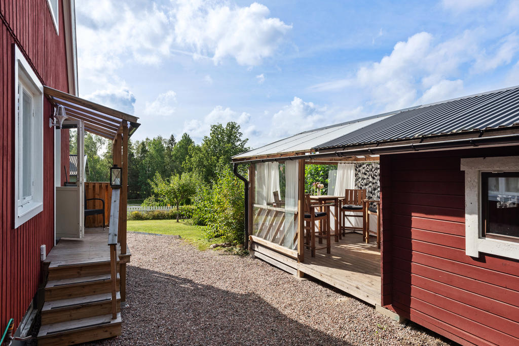 På tomten finns en trivsam gäststuga med vidbyggt uterum och förråd. På baksidan av huset finns ett trädäck där ett spabad står i insynsskyddat läge. Trädäcket har också plats för möblemang.