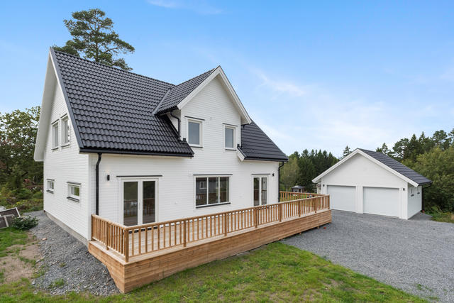 Arkitektritad nybyggd villa i Nysättra med sjöglimt mot Vätösund - generösa ytor och dubbelgarage!