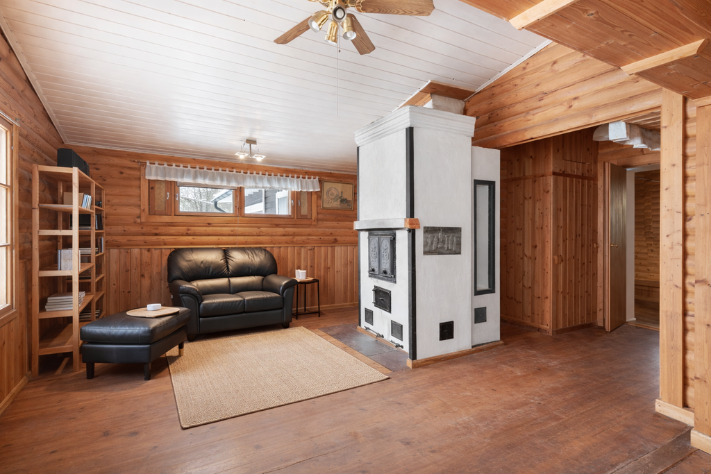 Charmigt timmerhus med bastu, verkstad och stor tomt – längst in på lugn väg