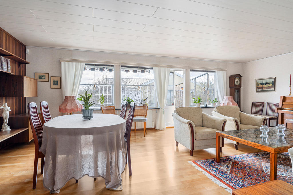 Välplanerat enplanshus med generösa ytor och solig altan med utsikt över Röllingbyängarna