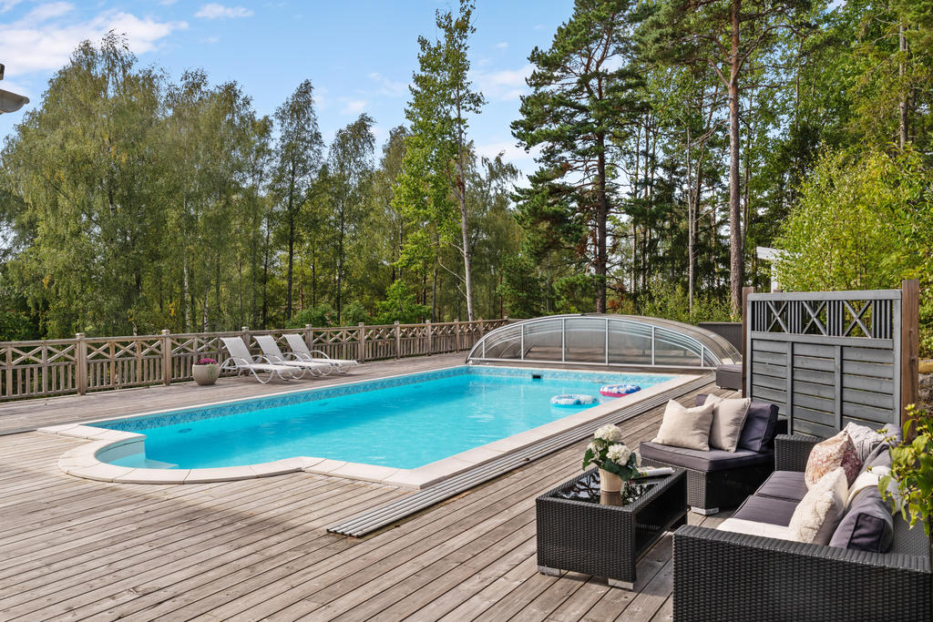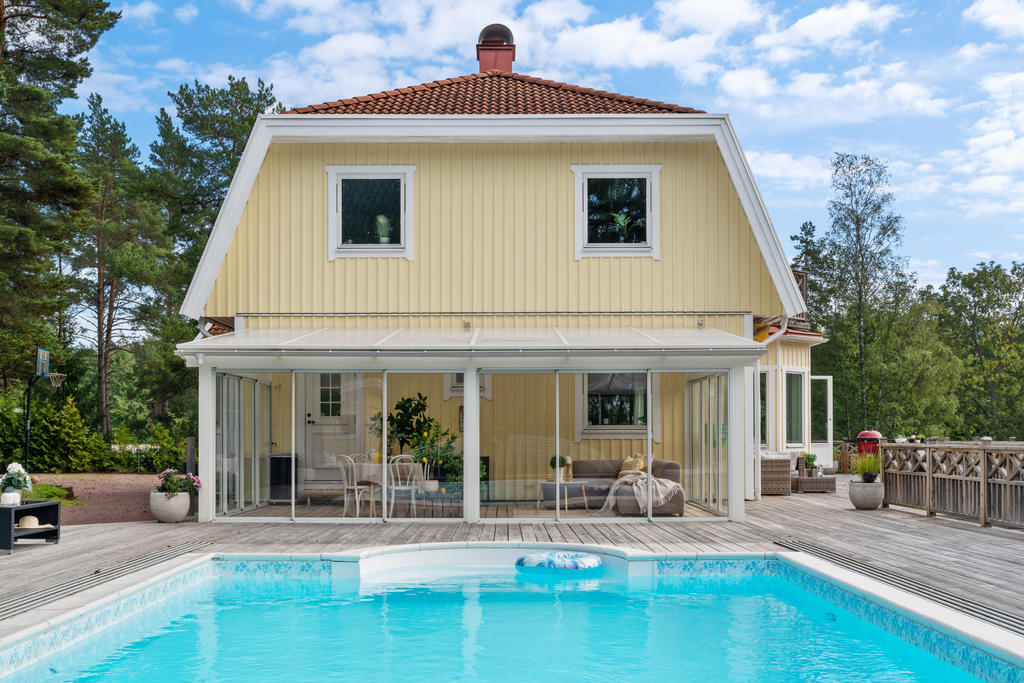 Villa med dubbelgarage, pool, bergvärme och flera gästhus