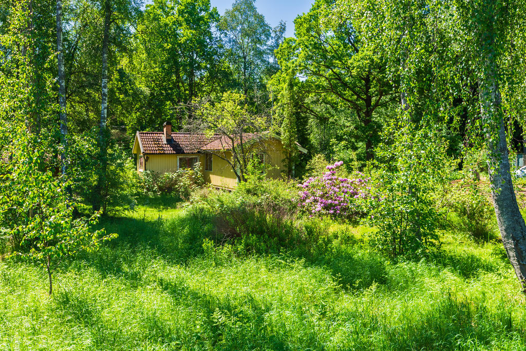 Plan och soldränkt hörntomt i populära Stava