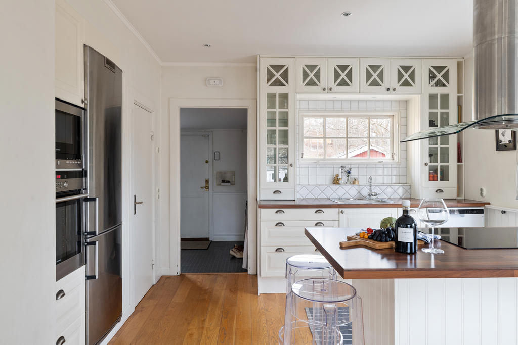 Redan innan du kliver in genom entrédörren infinner sig en rogivande känsla. Väl inne möts du av ett hem där sekelskiftets själ lever kvar i varje detalj med generös takhöjd, stora fönsterpartier, platsbyggda hyllor och vackra materialval skapar en varm och inbjudande atmosfär. Köket är husets naturliga samlingspunkt med charmigt och smakfullt tydlig sekelskifteskaraktär. Här finns all maskinell utrustning som behövs för att laga härliga middagar och den centrala köksön binder samman kök och matplats på ett socialt och naturligt sätt. Det skapar generösa sällskapsytor där familj och vänner kan samlas och trivas. Den mysiga punschverandan förlänger känslan ytterligare, en perfekt plats som bibliotek eller lounge där du kan slå dig ner intill den sprakande kaminen. Vardagsrummet bjuder på vacker fiskbensparkett, fina ytskikt och en tidlös elegans. Härifrån kliver du ut till den soldränkta altanen som blir en självklar plats för grillkvällar och långa middagar i goda vänners lag. På entréplanet finns även en separat WC samt ett helkaklat badrum med dusch. En trappa upp fortsätter den harmoniska känslan. Här möts du av fantastiska plankgolv, imponerande takhöjd och ett underbart ljusinsläpp som förstärker husets karaktär. Två rymliga sovrum erbjuder gott om plats för dubbelsäng och förvaring, samt ett mindre rum som passar perfekt som kontor eller barnrum. Möjlighet finns att skapa ytterligare ett stort sovrum för den som önskar. Bottenvåningen erbjuder en stor och praktisk tvättstuga, generösa förvaringsutrymmen samt flexibla ytor som enkelt kan anpassas efter behov som kontor, lekrum eller hobbyrum. Här finns även groventré och ett charmigt badrum med badkar.