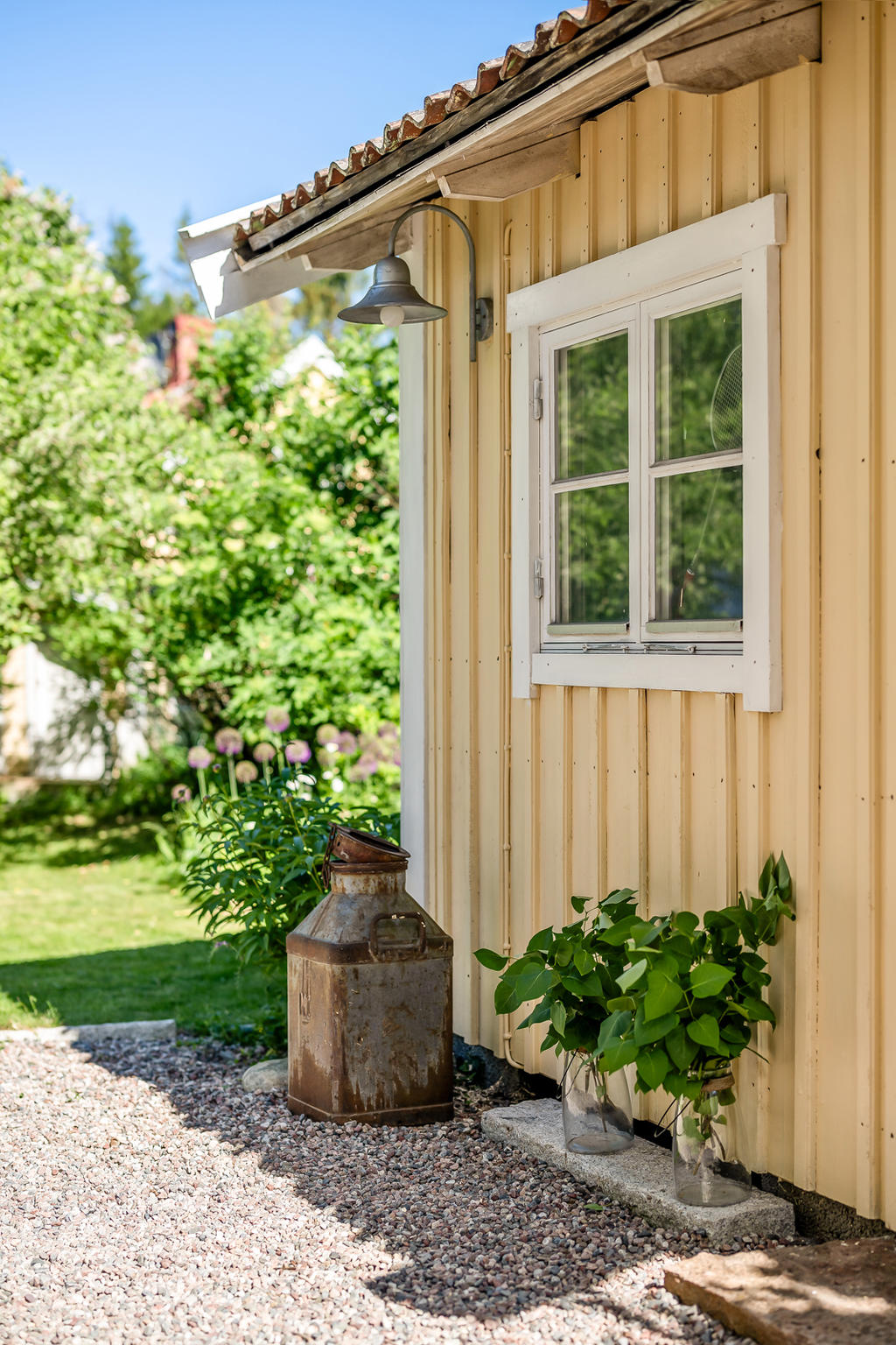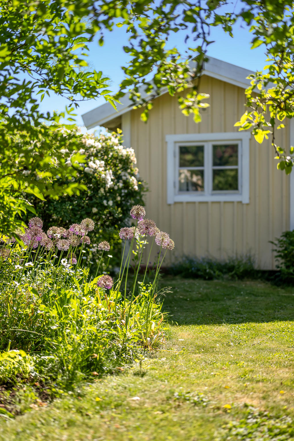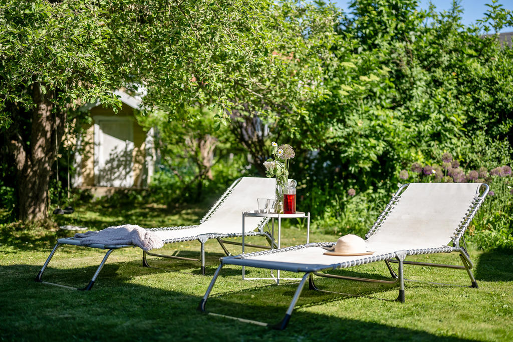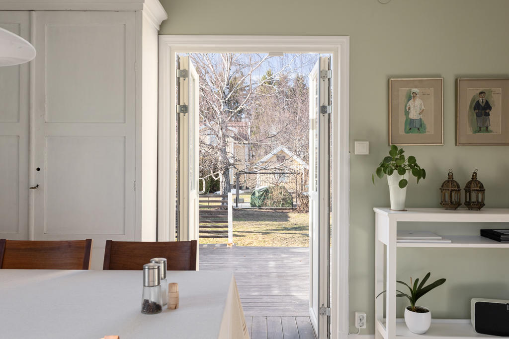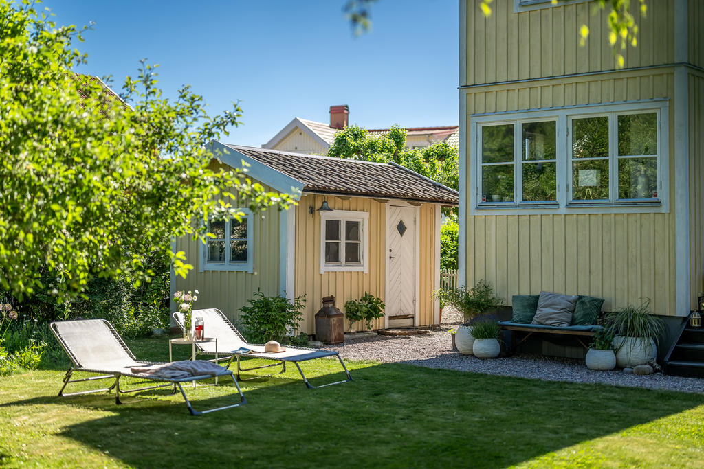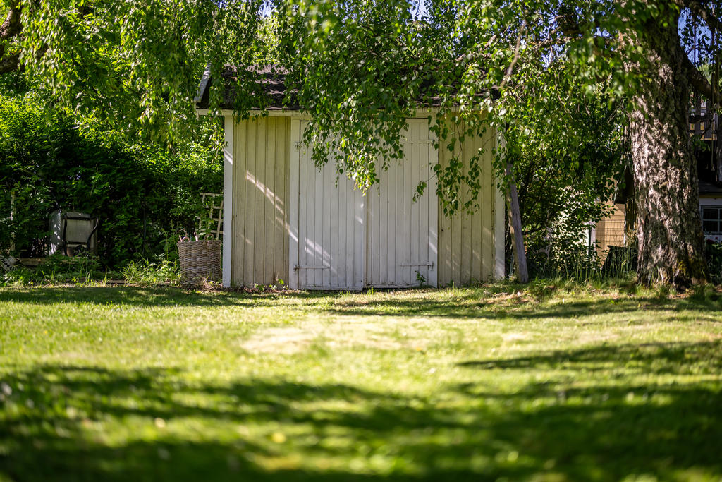 Trädgården är en uppvuxen och lummig oas med äppel- och plommonträd, blommande buskar och gott om plats för lek och spel. Här har kalas, studentfiranden och somriga middagar blivit fina minnen. Altanen fungerar som en självklar förlängning av huset med härlig kvällssol och ett insynsskydd som är som allra bäst när syrener och grönska står i full blom. Läget är lugnt och tryggt, utan genomfartstrafik – en plats där barn kan cykla och grannar hälsa.