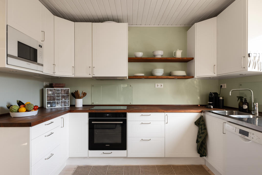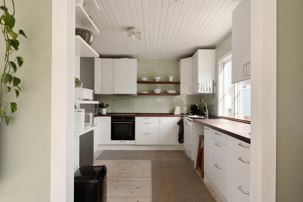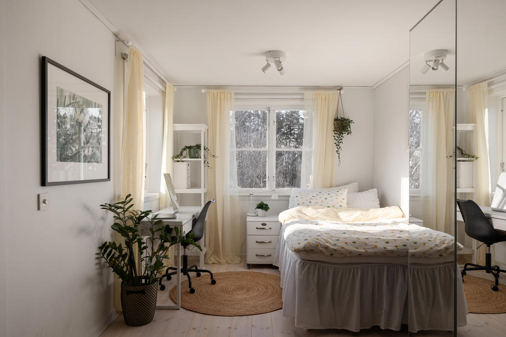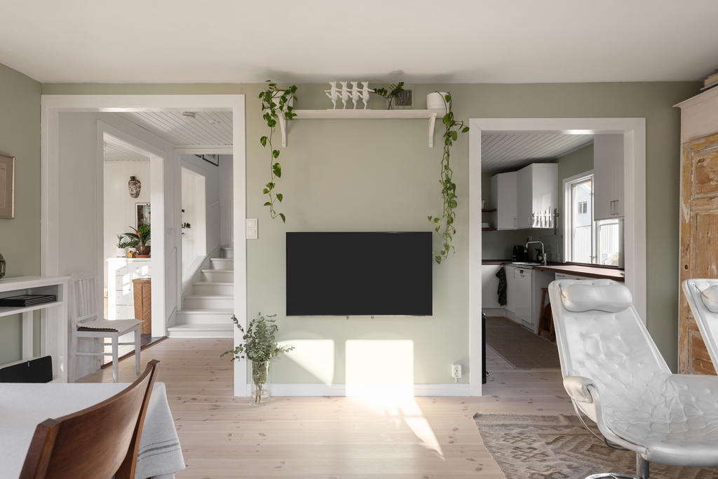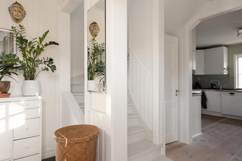 Huset är smakfullt tillbyggt och renoverat med omsorg, i en fin balans mellan det fräscha och moderna och de charmiga detaljer som ger karaktär. Den öppna planlösningen skapar en härlig rymd och kontakt mellan rummen – perfekt för familjeliv. Det generösa köket är hemmets naturliga samlingspunkt, med gott om plats för både matlagning och umgänge. Två renoverade badrum förenklar vardagen, och källarplanet med eget rum och badrum ger flexibilitet för gäster, tonåringar, hemmakontor eller när någon behöver lite extra lugn och ro.