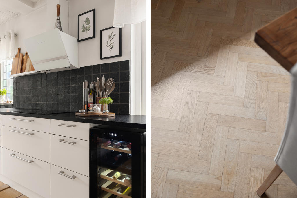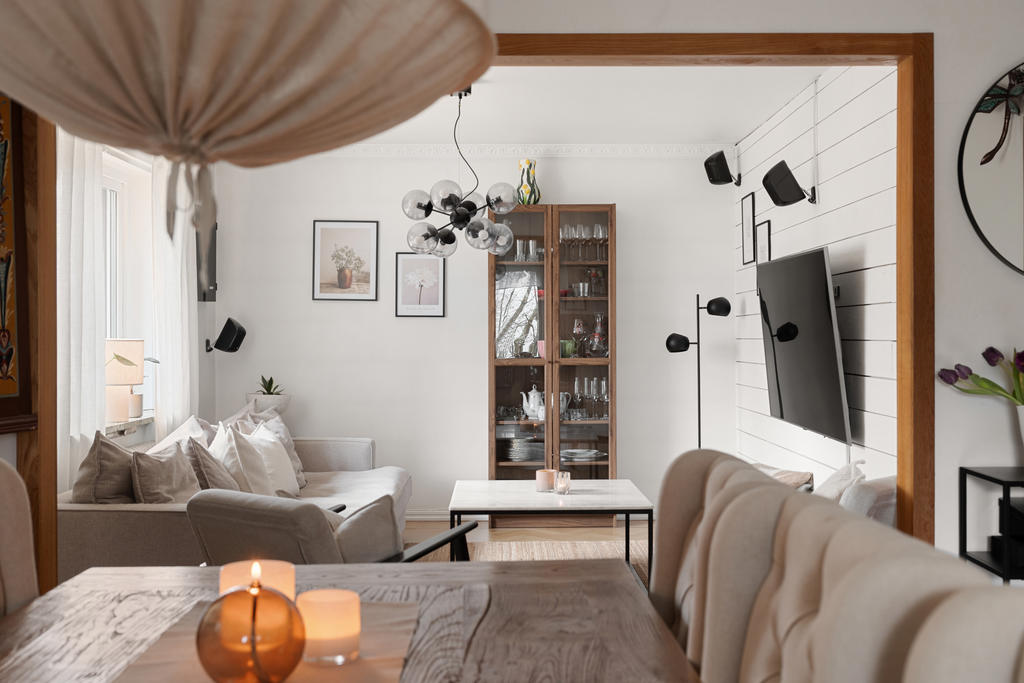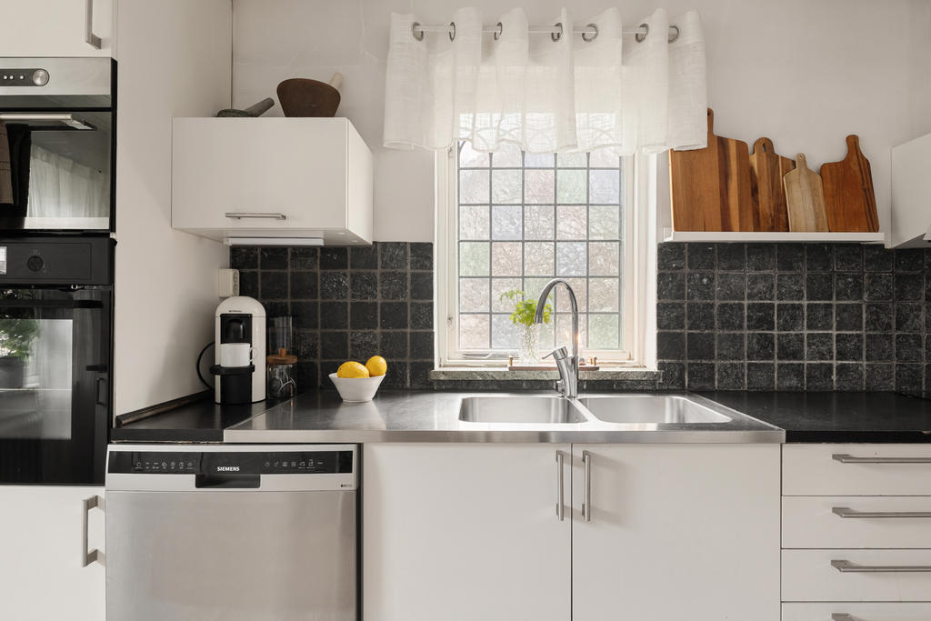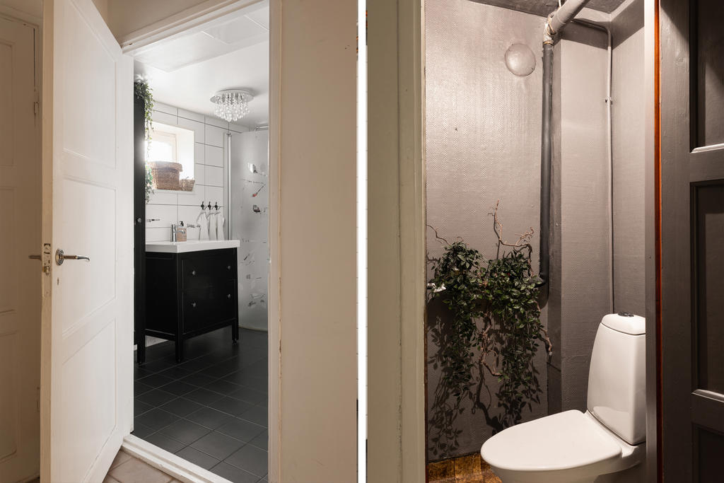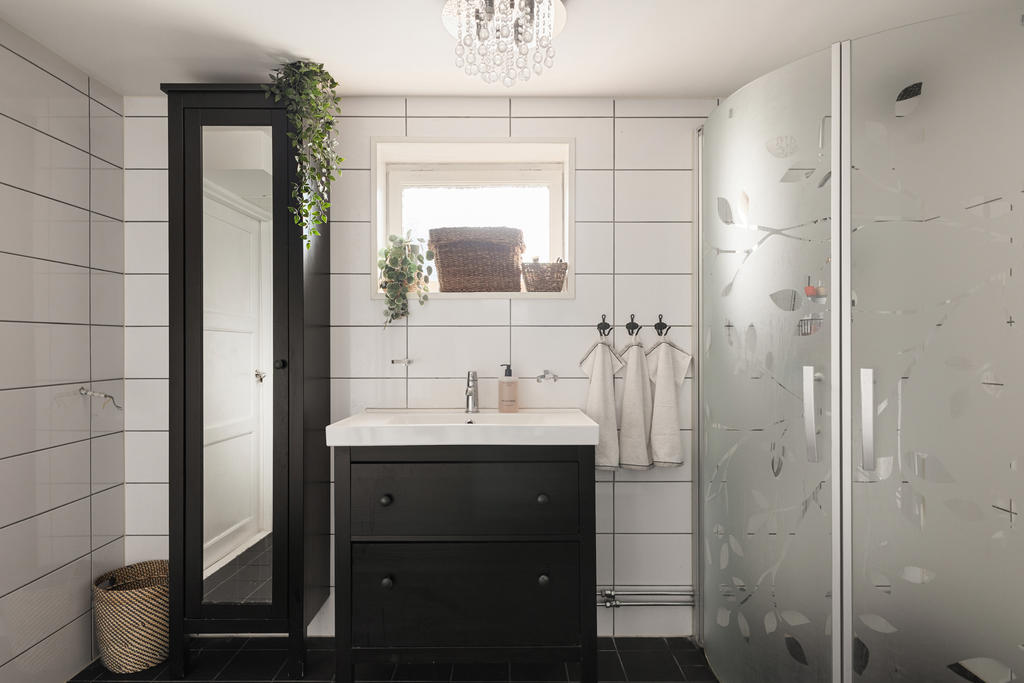 Köket är modernt och renoverat med gott om arbetsyta och generösa förvaringsmöjligheter, vilket gör det till en dröm för den matlagningsintresserade. Här finns även ett praktiskt skafferi som ger extra förvaring och funktion i vardagen. Flera fönster i olika väderstreck ger ett fint och naturligt ljusinsläpp genom hela entréplanet.