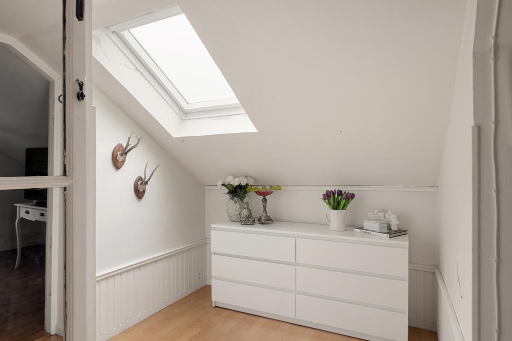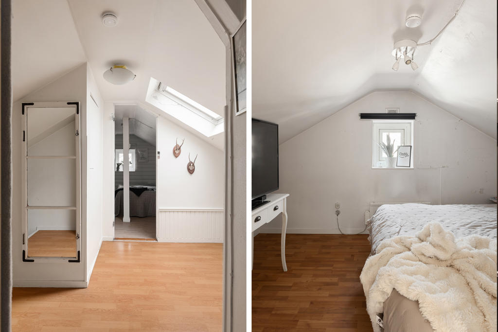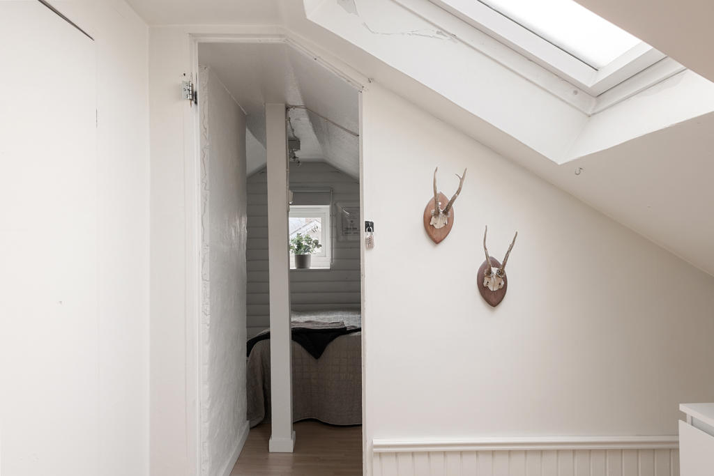 Den inredda vinden erbjuder två sovrum samt förvaring i praktiska kattvindar. Den övre hallen passar utmärkt som arbetsplats, läshörna eller för extra förvaringsmöbler.