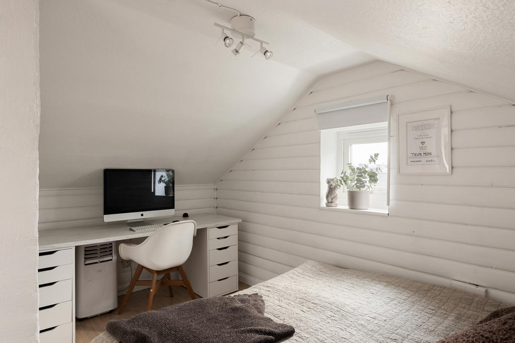 Det tidigare garaget är dessutom inrett och fungerar idag som ett extra rum – perfekt som gästrum, tonårsrum, hemmakontor eller hobbyutrymme. Möjligheterna är många och ger huset en extra flexibilitet.