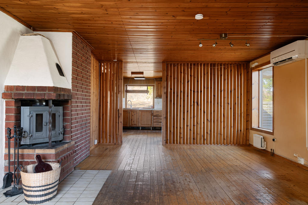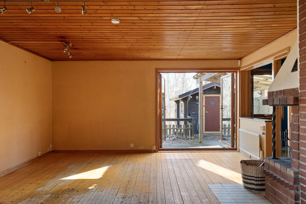 "Ett hus för en visionär mitt i naturen! Jag hade kunnat lägga en massa pengar på att renovera, men vi har sannolikt olika smak du och jag ändå. Så jag sparar tid, kraft och energi och låter dig välja själv hur det ska vara. Hus med bra grundstomme (väggar, tak, treglasfönster). Nuvarande elförbrukning per år (med 24-25 grader inomhus vintertid!) 12 970 kWh. Då tillkommer ett par kubikmeter ved för eldning i spiskassett. Tips på mycket bra vedleverantör + dessutom på ett härligt (hemligt) svart trumpetsvampställe ett par hundra meter från huset – som delges köparen vid kontraktskrivande."