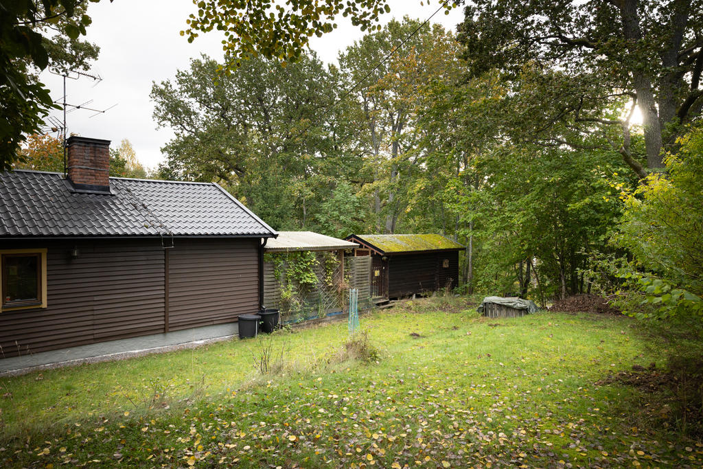 Välkommen till Flugvägen 2 och denna trevliga hörn-tomt inbäddad i vacker natur och grönska. Fastigheten erbjuder en liten charmig villa med entréplan om 64 kvm och källarplan om 60 kvm, stor tomt om 2 143 kvm, trevlig altan samt en isolerad och uppvärmd gäststuga. Huset är robust byggt med tjocka väggar, plåttak i bra skick, 3-glas fönster på entréplan bytta 2004. Husets interiör är i äldre stil med delvis behov av upprustning vilket ger köparen möjlighet att sätta sin prägel på det invändiga. Till huset hör en en stor altan med delvis takbelagd yta. Tomten erbjuder stor varierande växtlighet med bl.a. gräsmatta, trädgård och naturtomt.