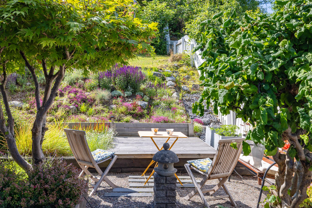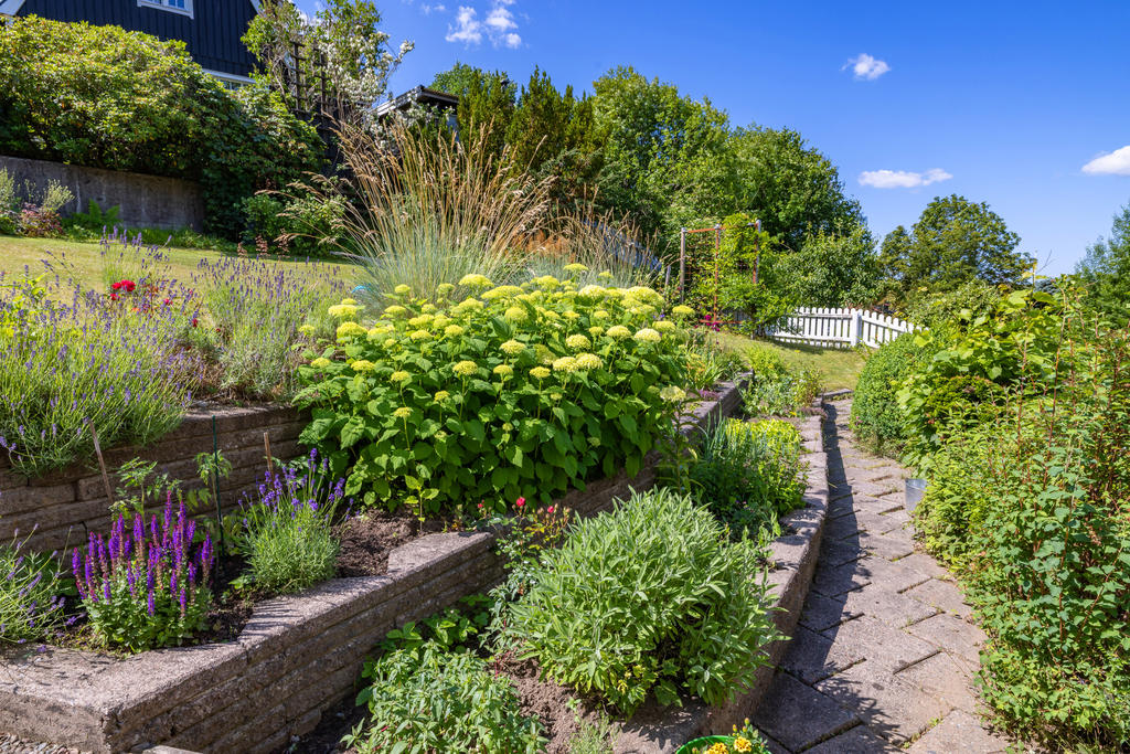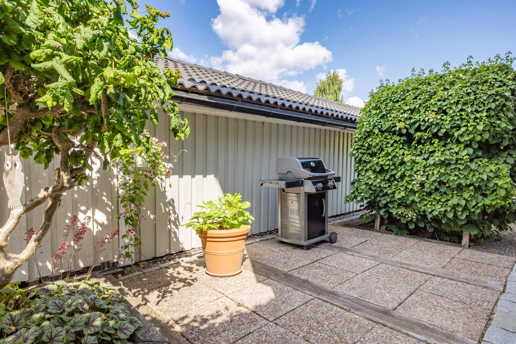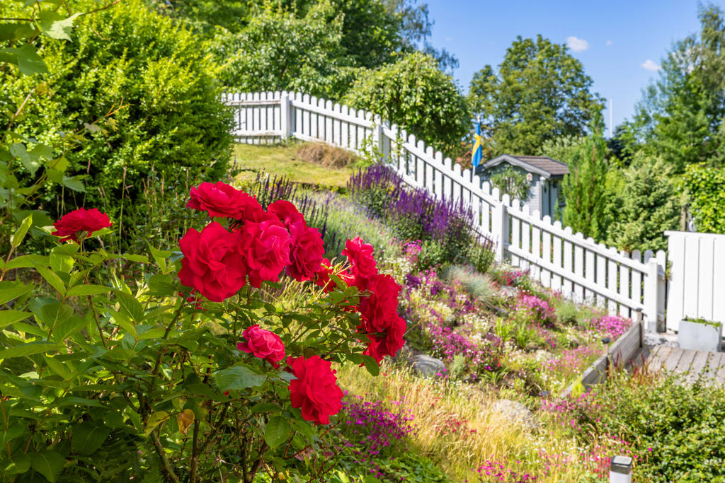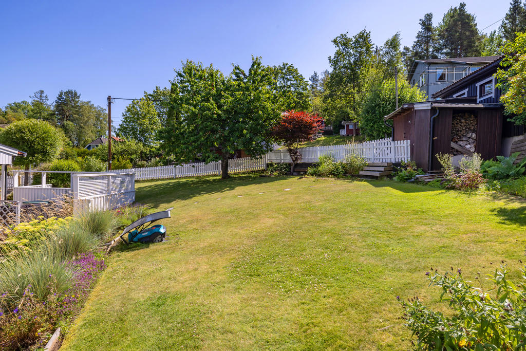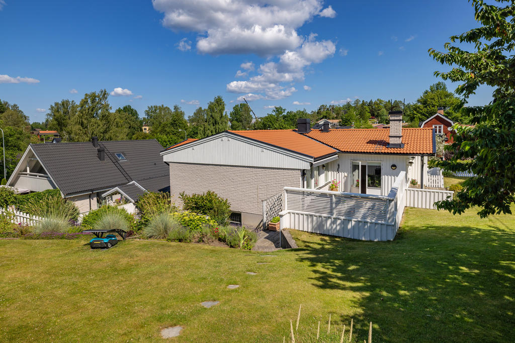 Den generösa hörntomten bjuder på ljus och frihet med plats för lek, trädgårdsdrömmar eller soliga stunder på altanen. Nedanför altanen sträcker sig en unik terrassodling som ger tomten karaktär och möjligheter för den odlingsintresserade. Vid ingången till nedre plan välkomnas du av en charmig japansk-inspirerad trädgård med en inbjudande entré och en mysig plats perfekt för en lugn fikastund. Tomten erbjuder även gott om plats för parkering (4 st p-platser) och i anslutning till huset finns ett praktiskt garage som underlättar vardagen.