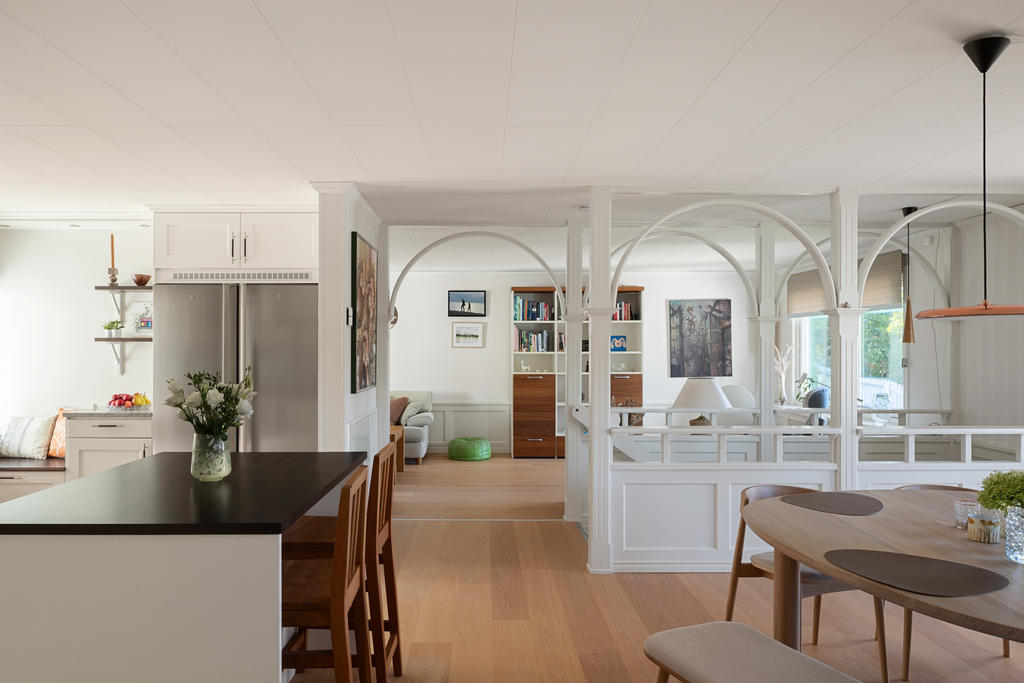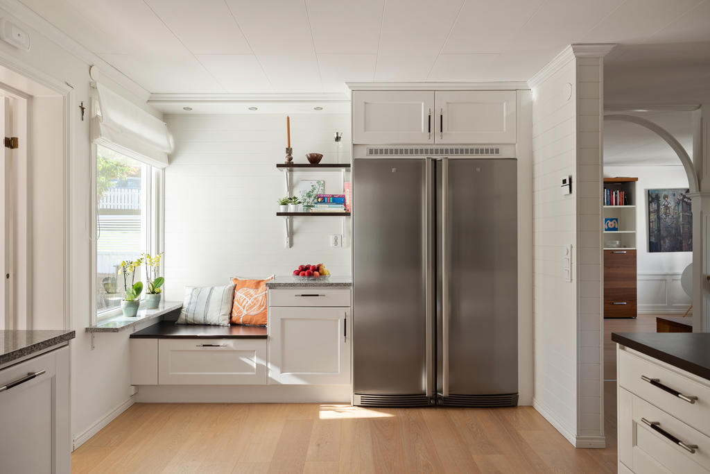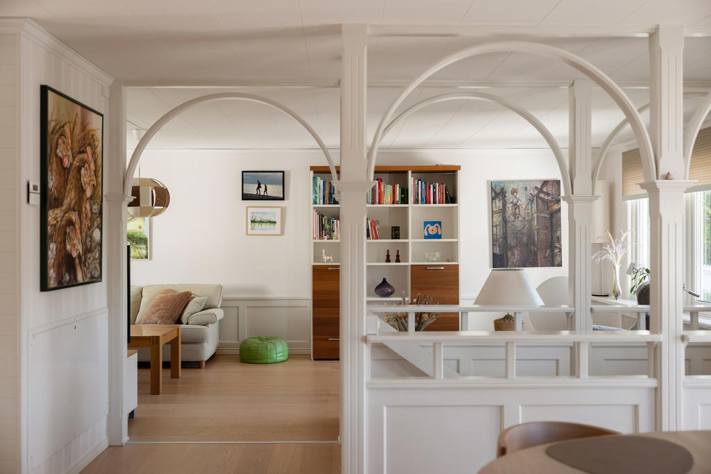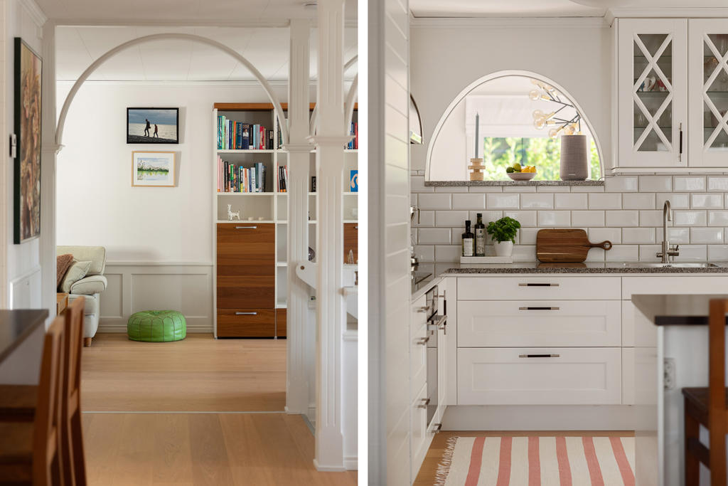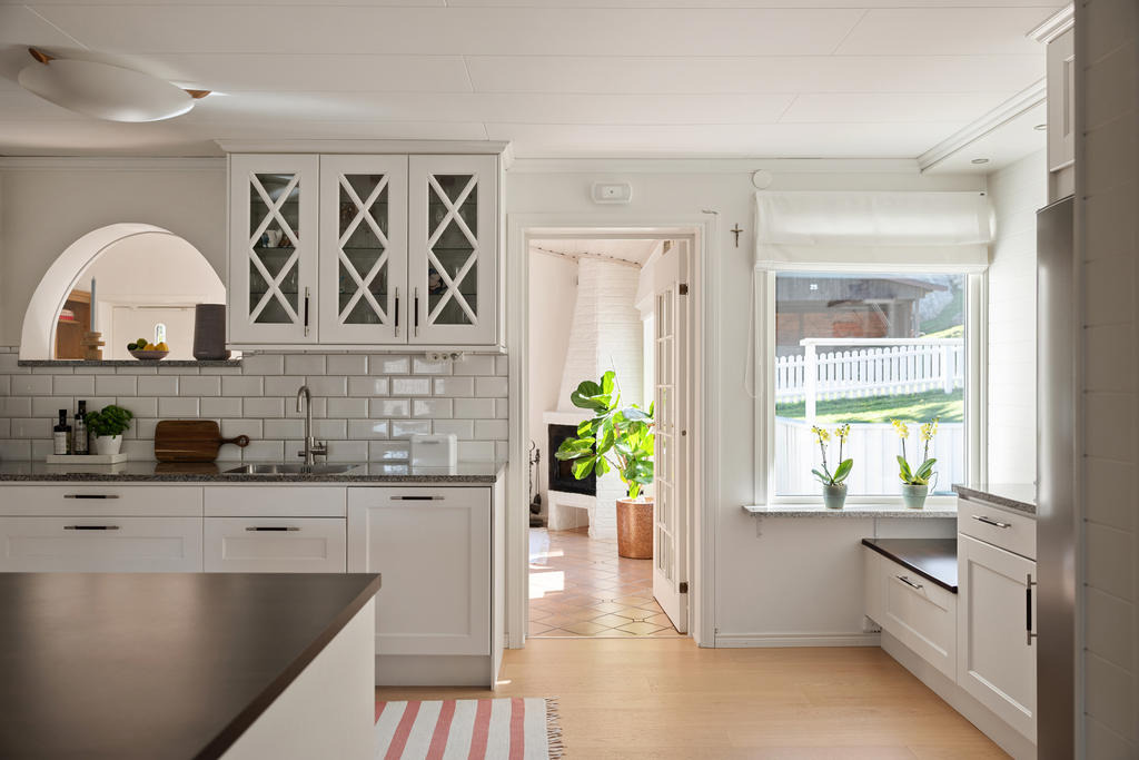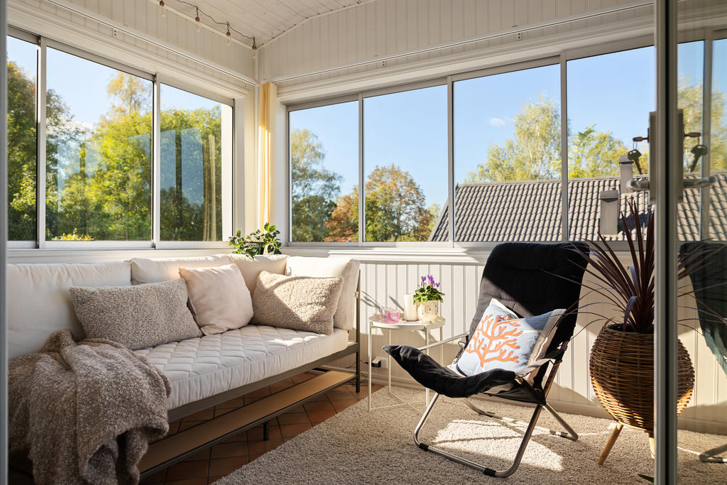 Via en elegant glasinnerdörr kliver du in i husets hjärta med ett stort och ljust Ballingslöv-kök i ask med köksö och en charmig sittplats vid fönstret. Här smälter träpaneler samman med det moderna och den öppna planlösningen skapar ett socialt flöde till matplatsen och en sömlös övergång till det rymliga uterummet via en helglasad balkongdörr. Vardagsrummet, som sträcker sig genom hela huset med fönster åt båda håll, bjuder på flexibilitet och ljus. Intill ligger master bedroom med klädkammare och en mindre toalett, allt sammanhållet av stilrena Kährs ekgolv och vattenburen golvvärme. Nya treglasfönster ramar in varje rum med energieffektivitet och elegans.