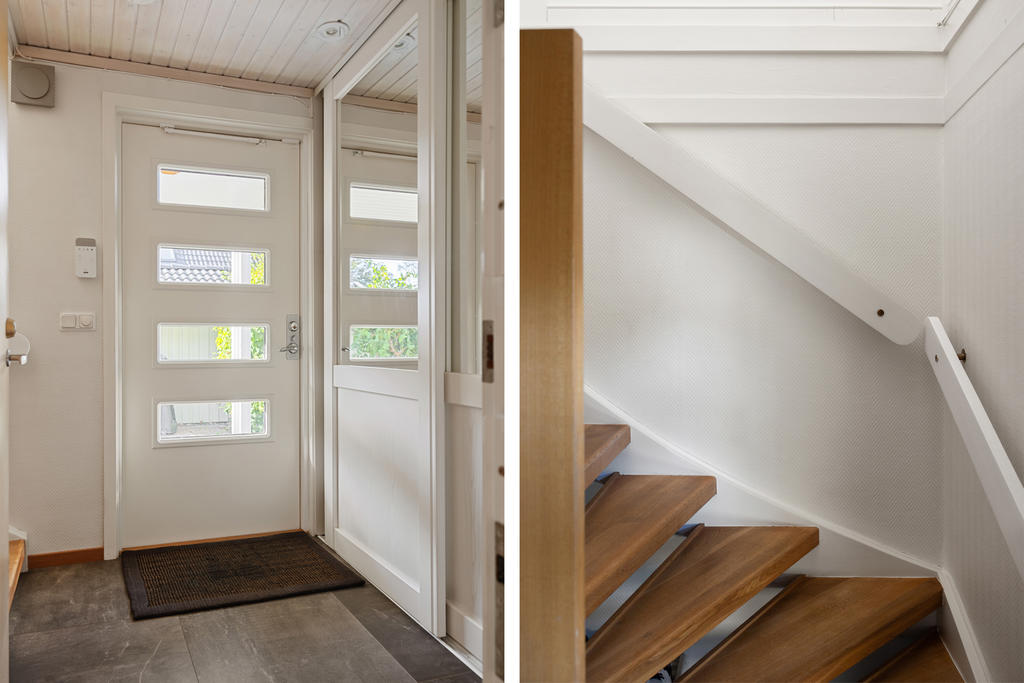 Med bergvärme, energiglasfönster och moderna materialval är detta ett energieffektivt hem som förenar praktiska lösningar med en välkomnande atmosfär. För extra trygghet är samtliga tre entréer utrustade med säkerhetsdörrar, och larmsensorer i hela huset ger ro i sinnet.