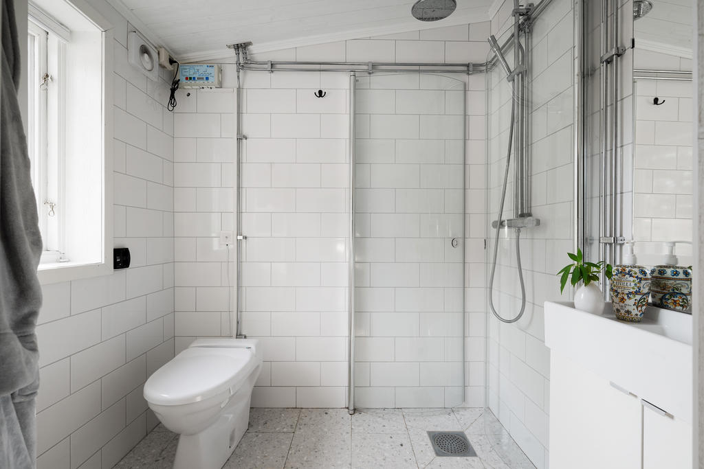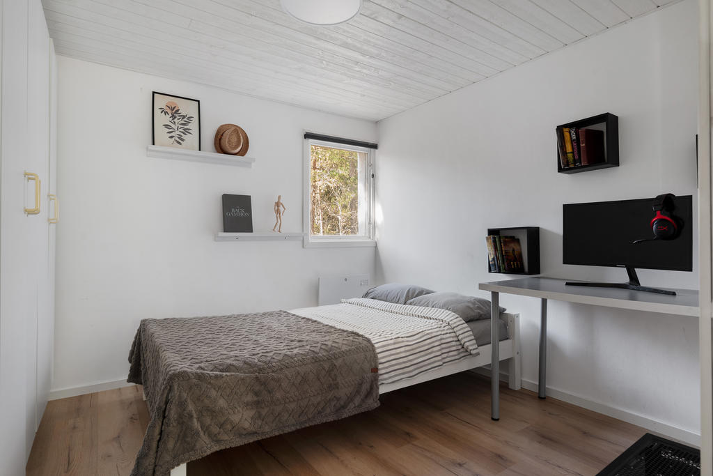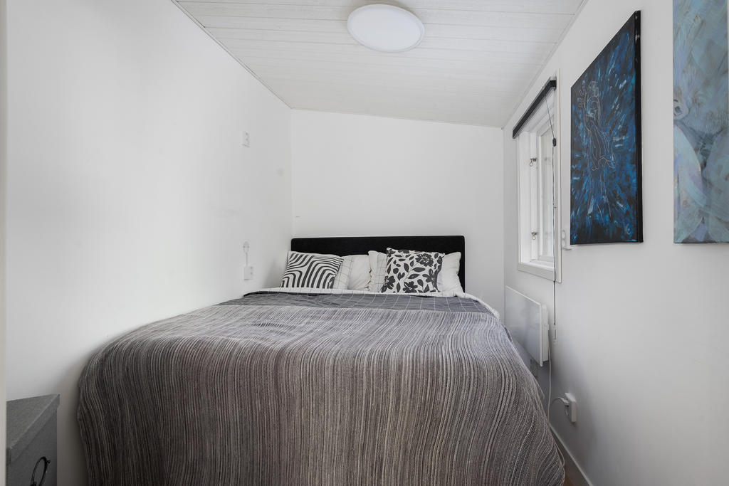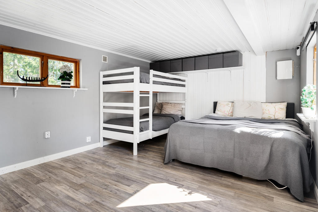 Villan har två sovrum samt ett helkaklat duschrum med vädringsfönster.
