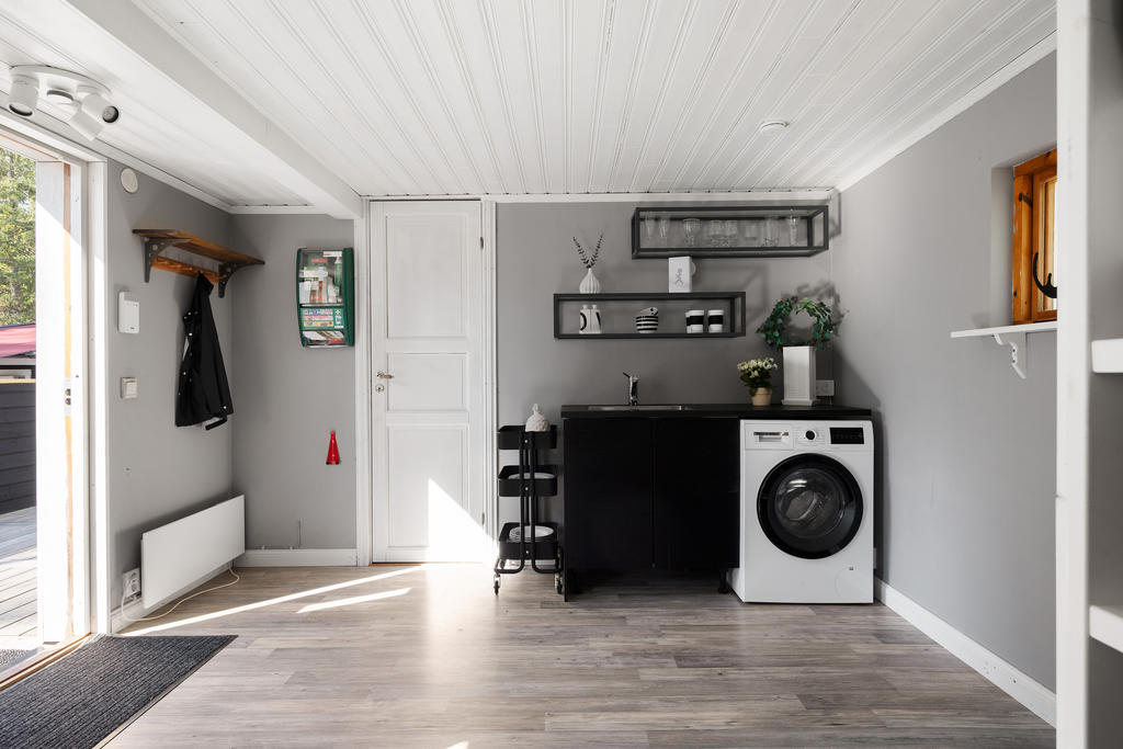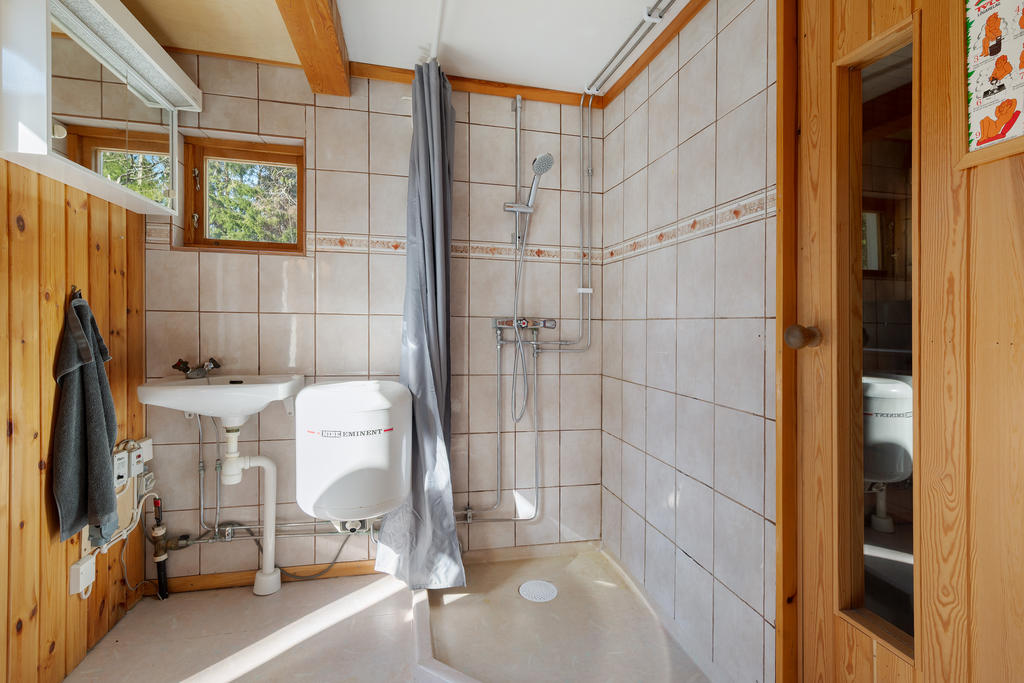 På fastigheten finns även ett gästhus med egen altan i ett riktigt bra solläge. Gästhuset är rymligt och ger plats för både säng, soffgrupp och matplats. Här finns ett pentry med tvättmaskin samt ett separat badrum med dusch, handfat och bastu. En fullt fungerande yta som passar perfekt för gäster eller tonårsbarn.