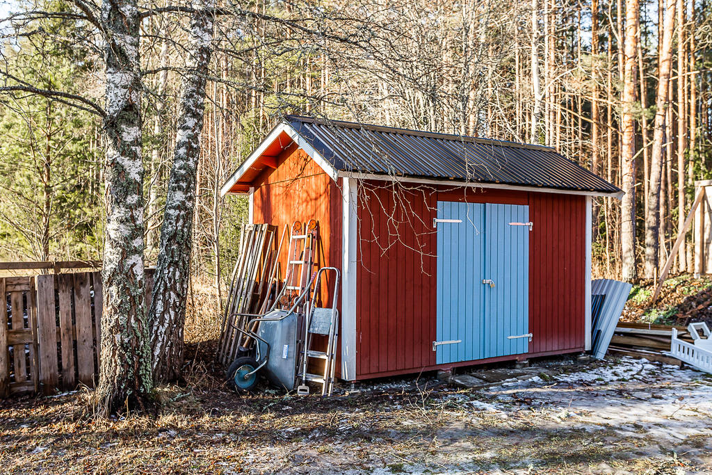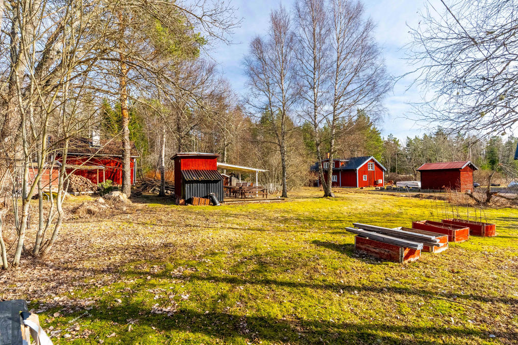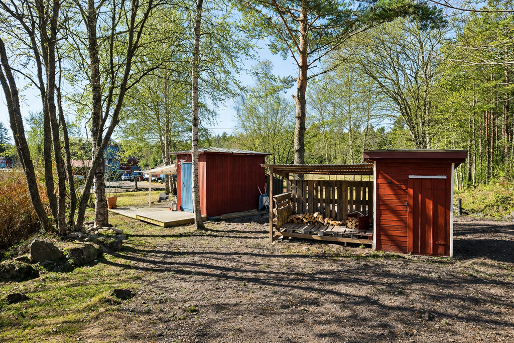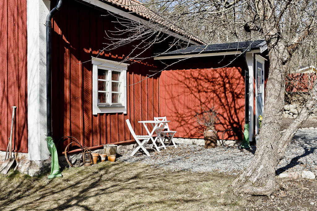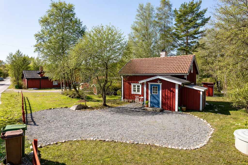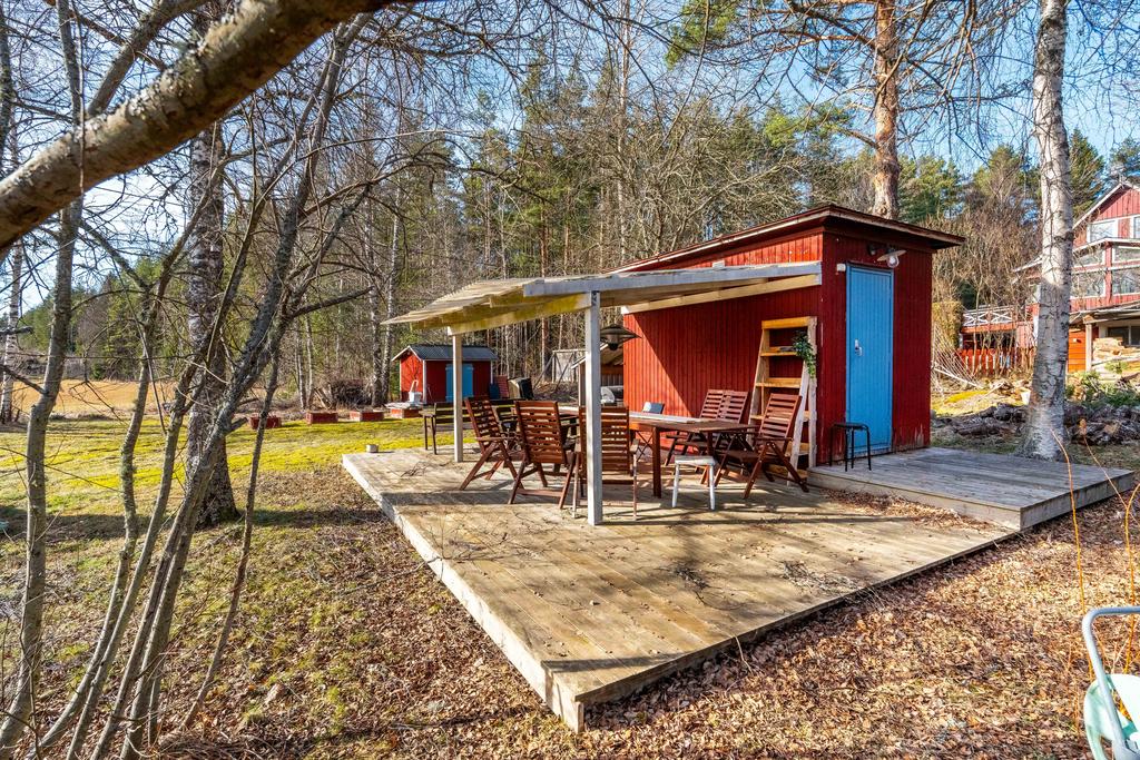 På tomten finns även ett separat hus som passar utmärkt som gästhushus eller extra sovrum. Byggnaden är renoverad, tilläggsisolerad och försedd med el och värme – ett mycket uppskattat komplement. Den takförsedda altanen ligger inbäddad i grönska under sommarhalvåret och blir en naturlig plats för avkoppling och umgänge. Avloppssystemet är nyligen uppgraderat med ett påkostat och miljövänligt minireningsverk som är skonsamt mot naturen.