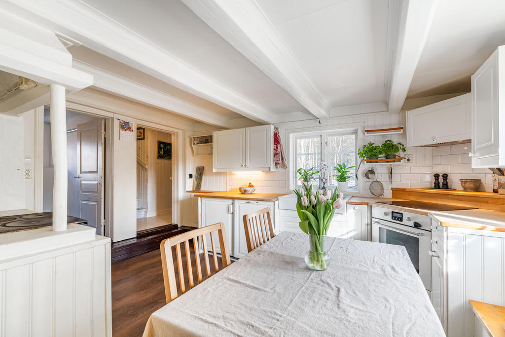 Här erbjuds ett mycket trivsamt och varsamt renoverat timrat torp med ursprung från 1800-talet, där den genuina känslan har bevarats samtidigt som bostaden anpassats för ett bekvämt boende i dag. Den registrerade boarean uppgår till 25 kvm, men tack vare snedtak och en genomtänkt, yteffektiv planlösning upplevs bostaden som betydligt större – motsvarande cirka 35 kvm. Trots sin storlek upplevs huset mer som ett komplett hem i villastil än som ett traditionellt torp, med tydliga funktioner och en hemtrevlig helhet. Fastigheten omges av en lummig och uppvuxen trädgård med fruktträd, bärbuskar, jordgubbsland och en vacker syrenhäck som skapar en rofylld och insynsskyddad miljö.