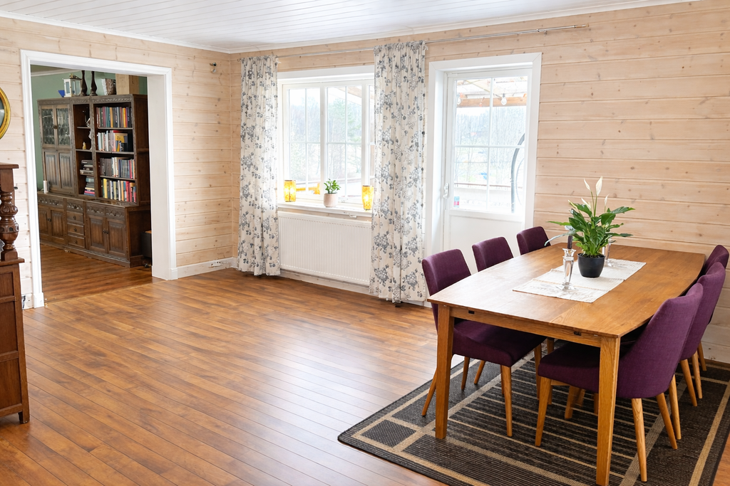 Rymlig familjevilla med bergvärme, stort garage och naturnära läge i Östervallskog